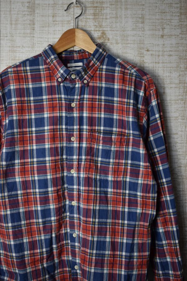 ●US USED OLD NAVY オールドネイビー ネルシャツ チェック柄 レッド赤ブルー青【L】