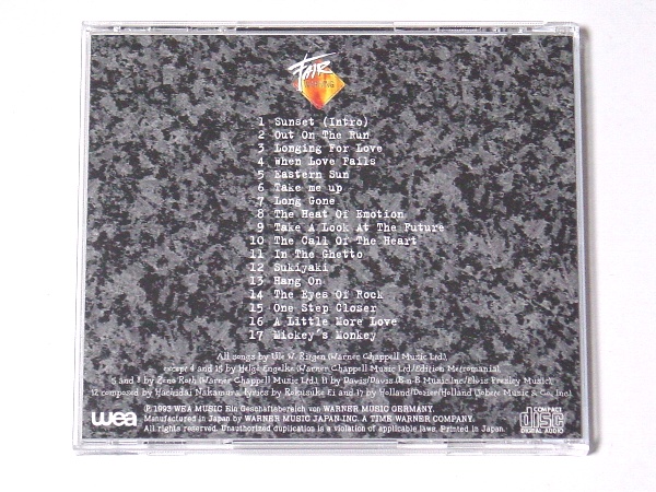 | ◆状態:ディスクに小キズあります。 発売元:WEAミュージック 発売日: 1993年12月21日 盤種: CDアルバム レコードNo: WMC5-677 1. サンセット(イントロ) 2. アウト・オン・ザ・ラン 3. ロンギング・フォー・ラヴ 4. ホェン・ラヴ・フェイルズ 5. イースタン・サン 6. テイク・ミー・アップ 7. ロング・ゴーン 8. ヒート・オブ・エモーション 9. テイク・ア・ルック 10. ザ・コール・オブ・ザ・ハート 11. イン・ザ・ゲットー 12. スキヤキ 13. ハング・オン 14. アイズ・オブ・ロック 15. ワン・ステップ・クローサー 16. ア・リトル・モア・ラヴ 17. ミッキーズ・モンキー ◆作品紹介:初来日公演のライブ盤。坂本九のヒット曲のカヴァー(12)も聴きものだろう。 |