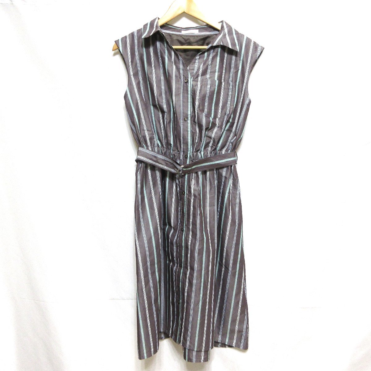 ◆AG by aquagirl リングベルト付き ストライプ ノースリーブ ワンピース サイズS(ブラウン)◆USED | |||