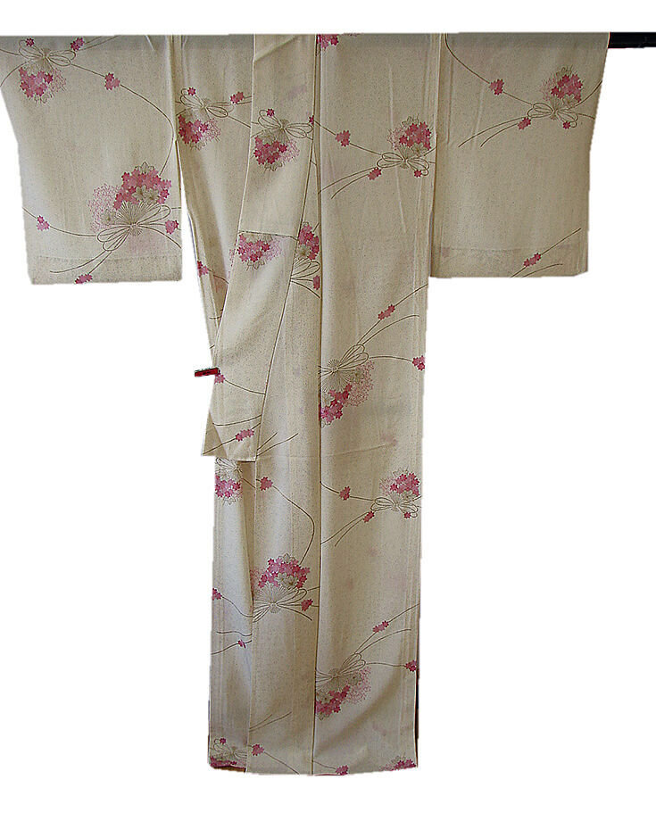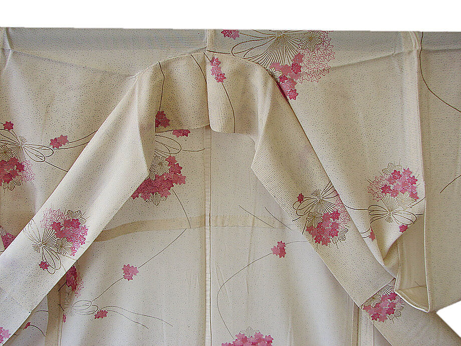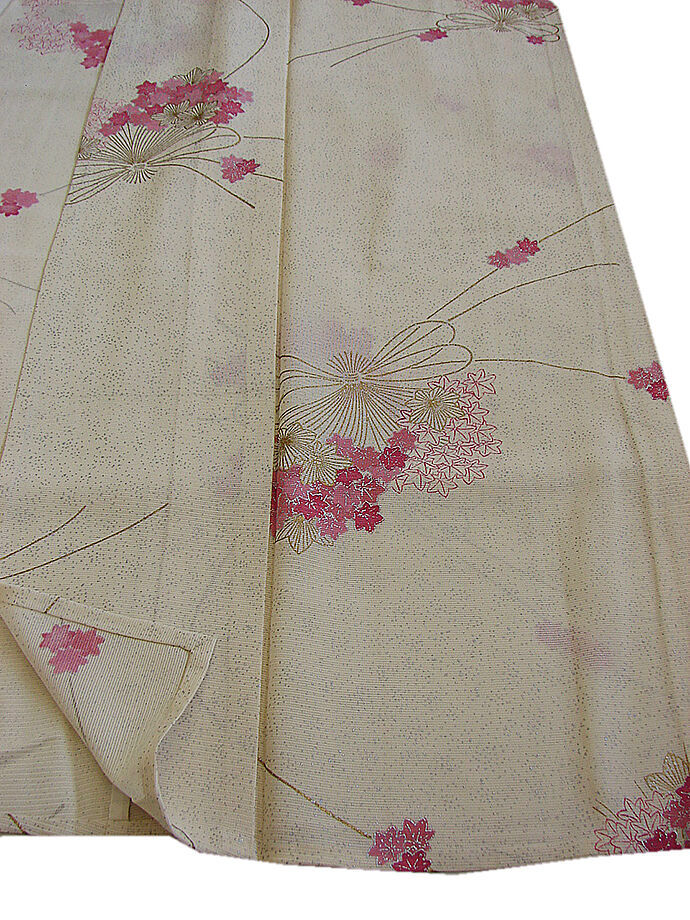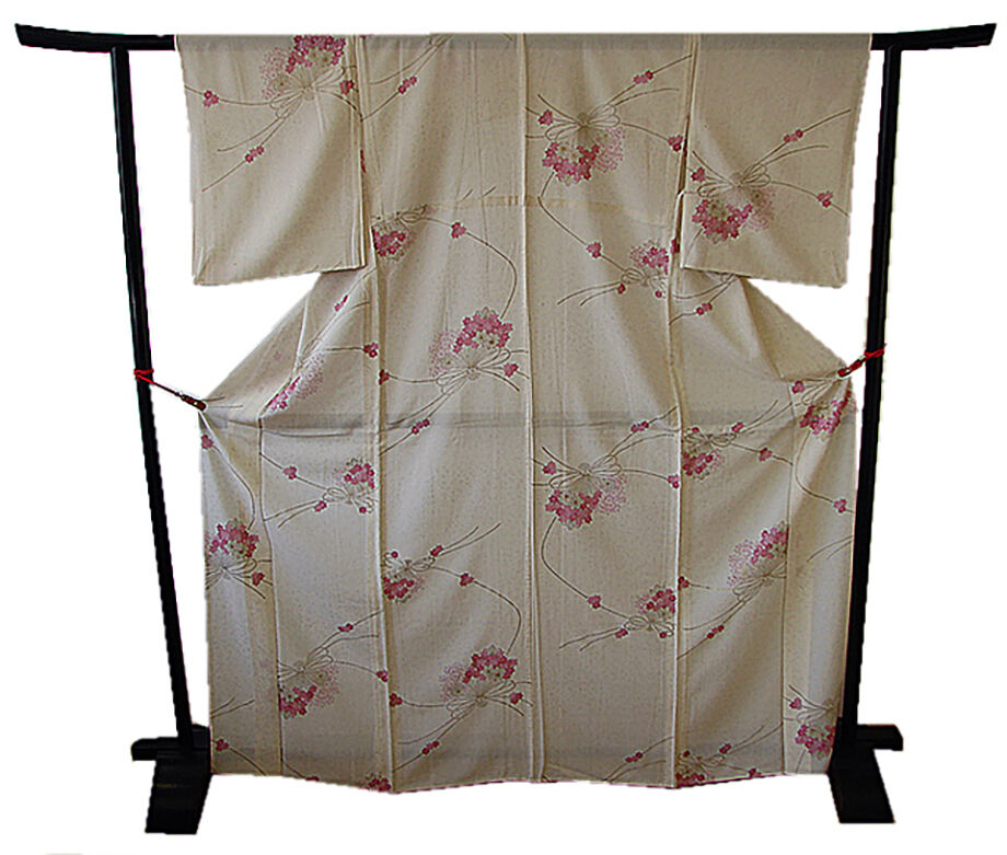 | 商品説明 | こちらのお品は夏物でございますので、7月~8月にお召頂ければと思います。 「絽」と言えば、紗と双璧を成す夏のお着物の生地でその最大の魅力は絶妙の透かし加減でございます。 清涼感溢れる地の風を通すしなやかさは夏に着物を着るという贅沢を快適に愉しませてくれることでしょう。 着物には、大きく分けて「袷(あわせ)の着物」と「単衣(ひとえ)の着物」と「夏着物」があります。 反物(表地)を着物に仕立てるときに、裏地類をつけるものを袷の着物、 つけないものを単衣の着物と呼び、胴裏や八掛といった裏地がつかない一枚ものの着物です。 また裏地がないため、座る時などにヒップのラインが目立たないよう、 居敷当て(いしきあて)の生地をつけることもあります。 こちらのお品には居敷当ては付いておりません。 とてもしなやかなさらっとした肌触りが極上の着心地を誘う滑らかな駒絽の3本絽の生地は 生成り色地に銀彩加工仕立てのたたき染に、花束柄染柄に金銀彩加工仕立てとなっております。 |