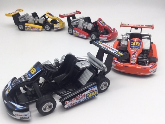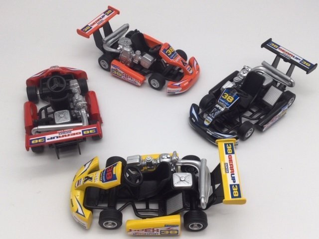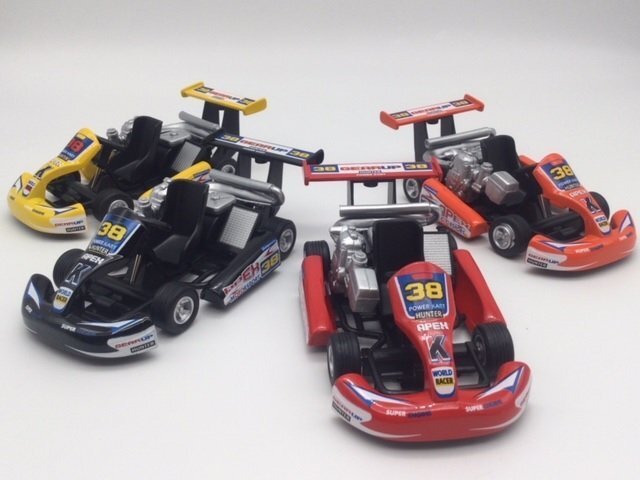 ウェリー社製 ゴーカートミニカー お届けするのは画像1枚目の商品のみとなります。 画像2~4枚目は共通画像となりますのでご注意下さいませ。 サイズ:全長約13cm、高さ約4cm、幅約7cm ボディ及びリアスポイラーはダイキャストメタル製。 シャーシ、エンジン、シート、ステアリングホイールはプラスチック製。 プルバックアクション付きなのでチョロQみたいに走らせる事が出来ます。 遊園地でよく見かける遊戯用のゴーカート♪ ちょっとリアルな形は珍しいかも!? 細かい部分までよく再現されています!! *こちらは箱入り商品ではございませんので、ご注意くださいませ。 1台1台検品し、丁寧に梱包しておりますが、 仕入れ時からのかすかな傷、汚れ、塗装ミスがある場合があります。 |