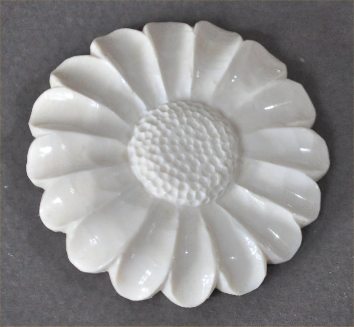 ナンタケットバスケット用のマンモス牙の大きなガーベラ花オーナメントサイズは、50mm径 厚み9mm磨き仕上げ大きなガーベラ1輪デザインでラウンドバスケットに飾ると素敵です。