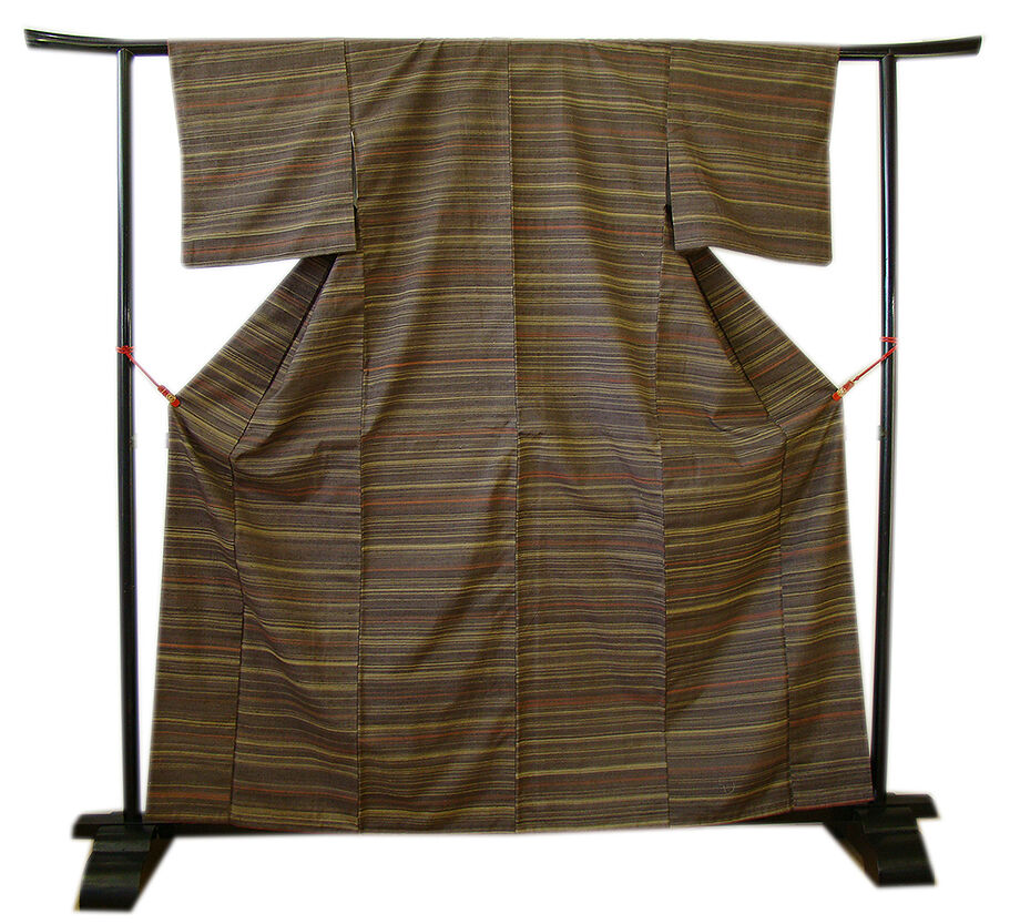 ★超大特価★S寸!帯や小物次第で様々な表情をお愉しみ頂ける逸品! 暮らしのお洒落着に重宝する横段柄の真綿紬の紬着尺(正絹) L015★ | |