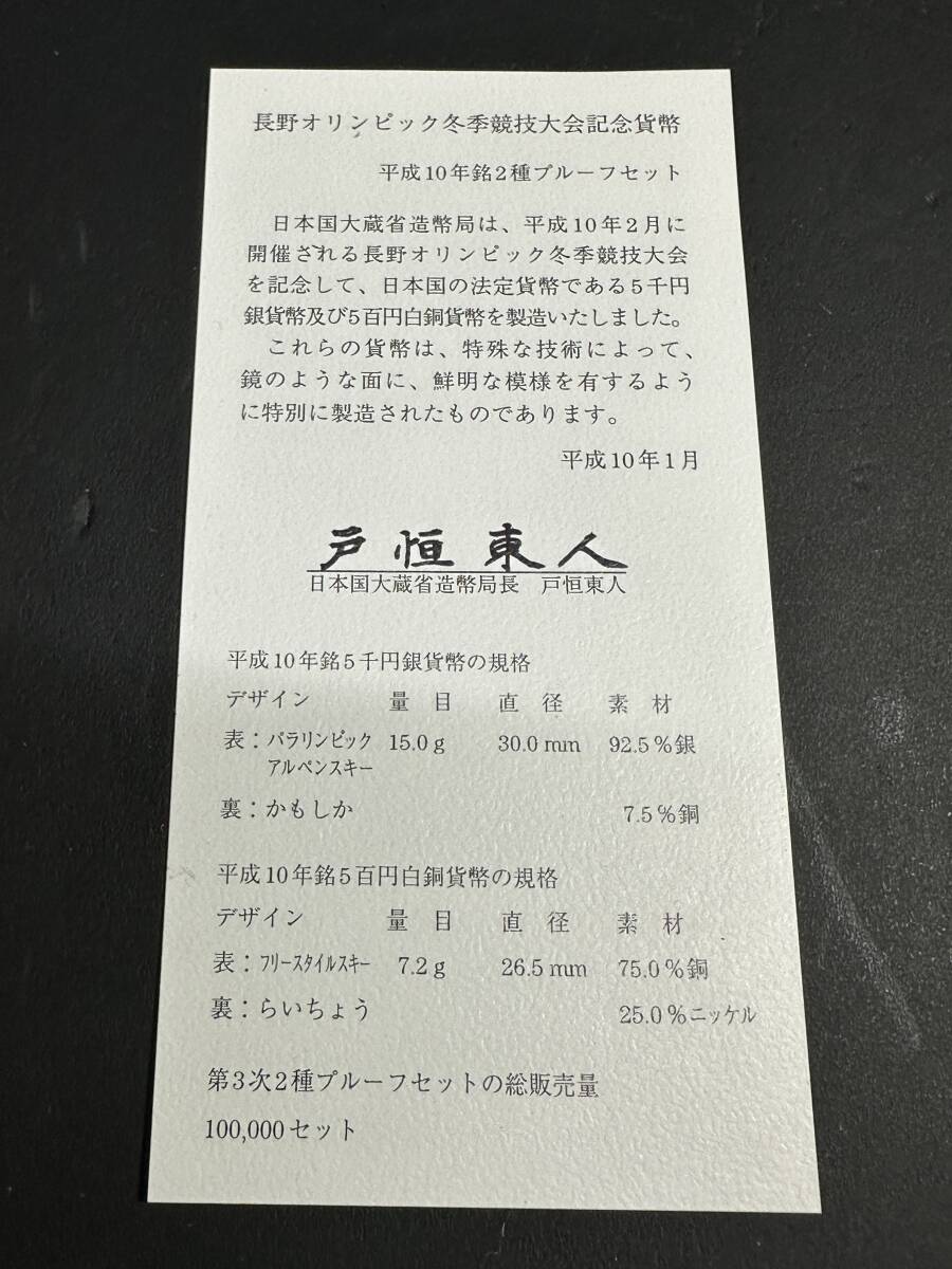 付属 5000円銀貨 500円白銅貨 詳細紙×2 ケース 箱 他の詳細は画像でご確認くださいませ。 カラー:シルバー 希少感とデザイン性満載の長野オリンピック 冬季五輪 1998 第3次 冬季競技記念プルーフ貨幣セット 箱付きで、ご利用やコレクションにおすすめの一品です。 |