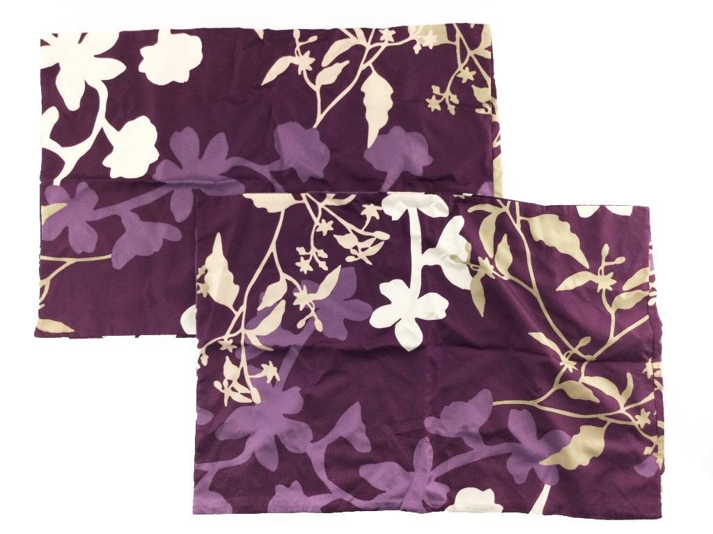 リーフ柄が特徴的なパープルカラーの枕カバー(ピローケース)2枚セットです。|