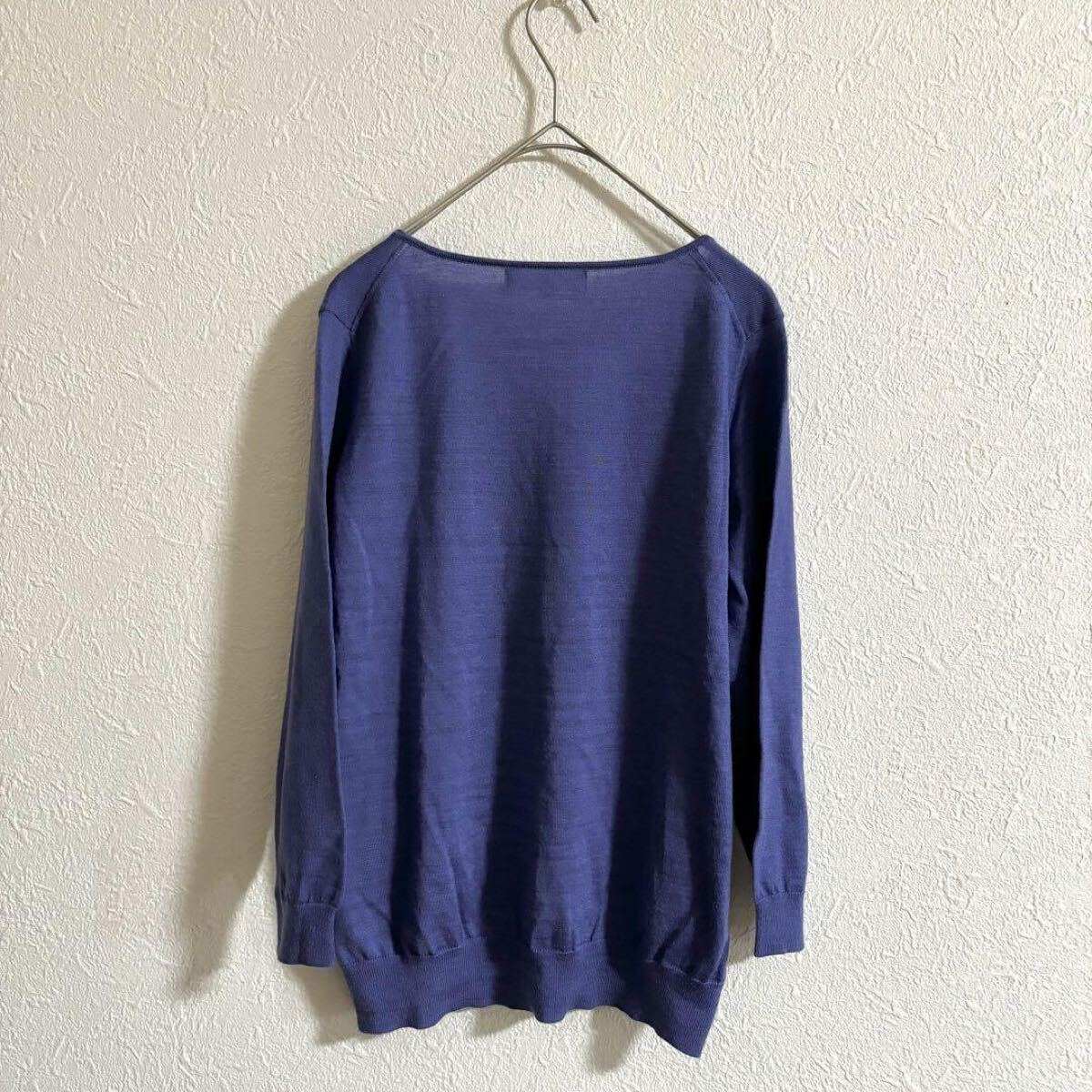自由区 ニット セーター ウール Vネック レディース 藍色 長袖