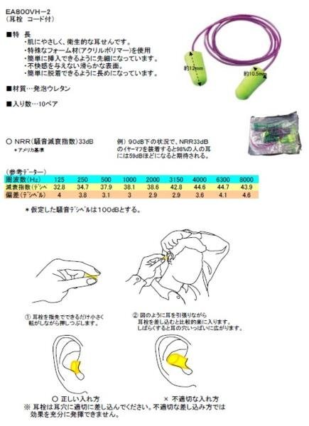 | ESCO MOLDEX 耳栓 コード付 10組 EA800VH-2 |