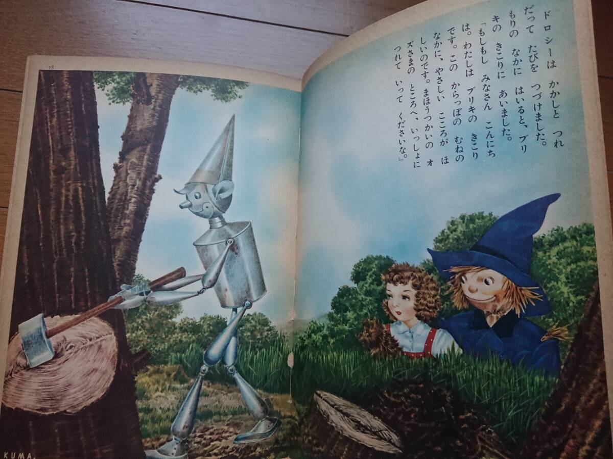 今では絶版でかなり入手困難な講談社より出されていた熊田千佳慕さん絵による名作「オズの魔法つかい 講談社の絵本」です。多くの方が知っているフランク・バウムさんの屈指の名作「オズの魔法使い」、それの日本語版でこちらが最初に出された熊田さんバージョンのオリジナルです。昭和30年ー1955年の初版。復刻されたものなどはこの本をベースにしています。岸なみさん文。