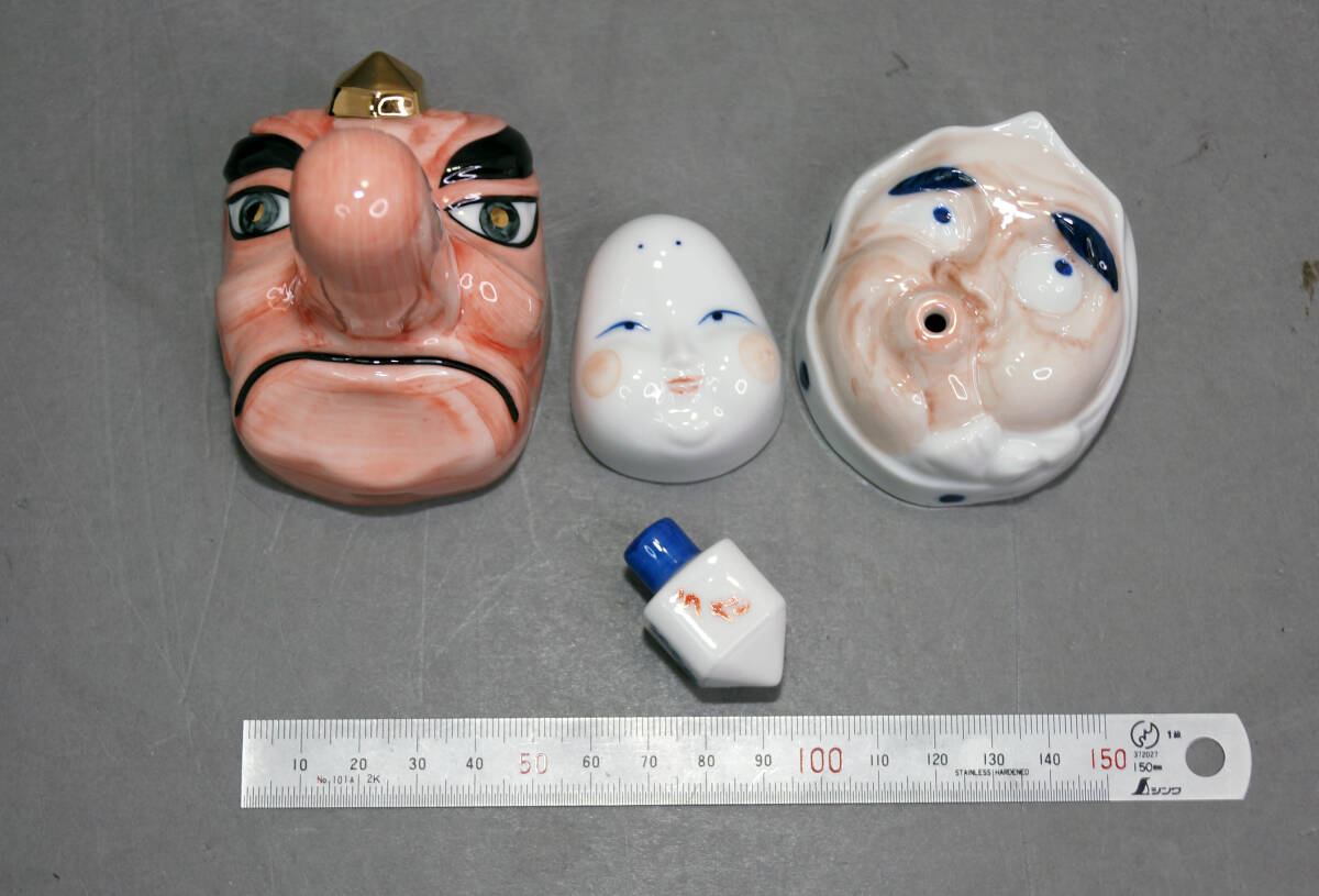 | 商品説明 | 可杯 薬師窯 天狗うたげ 盃 セット 中古品 天狗:63㎜×56㎜×83㎜ ひょっとこ:69㎜×63㎜×30㎜ おかめ:46㎜×38㎜×22㎜ 箱なし |