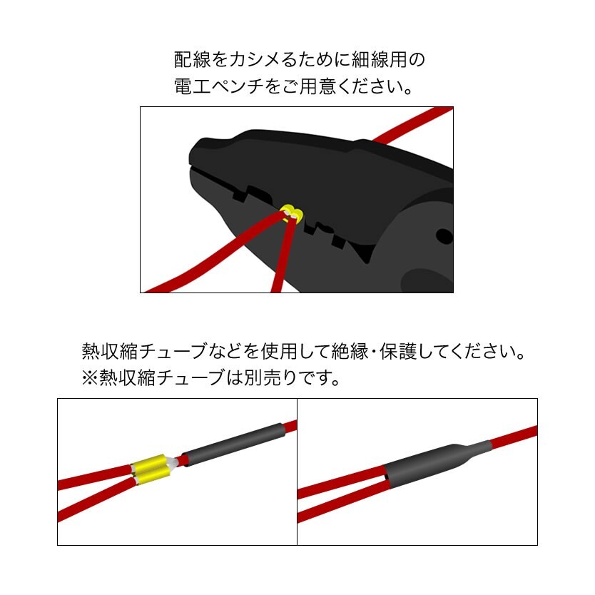 | コンパクトに結線可能 適合コード:約0.3-0.75sq ※端子をカシメるために細線用の電工ペンチをご用意ください |