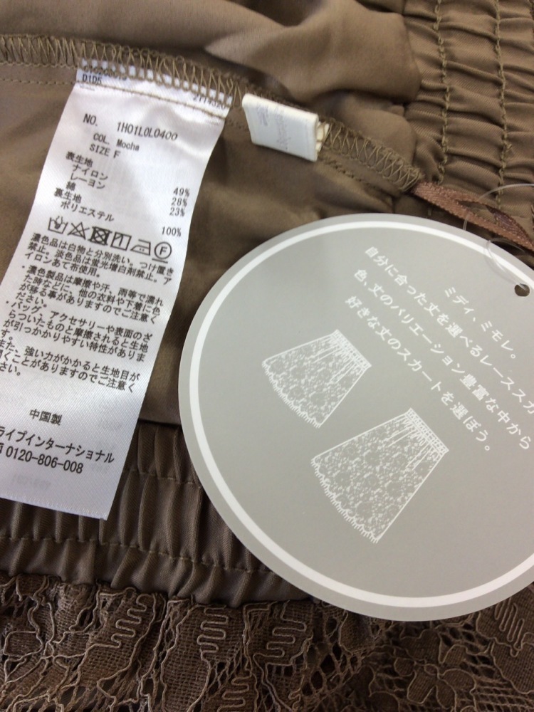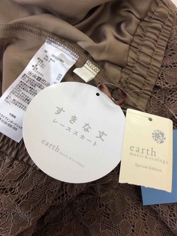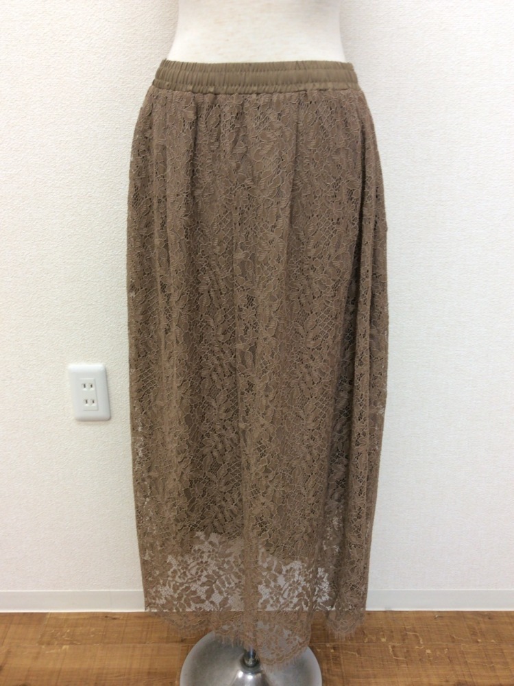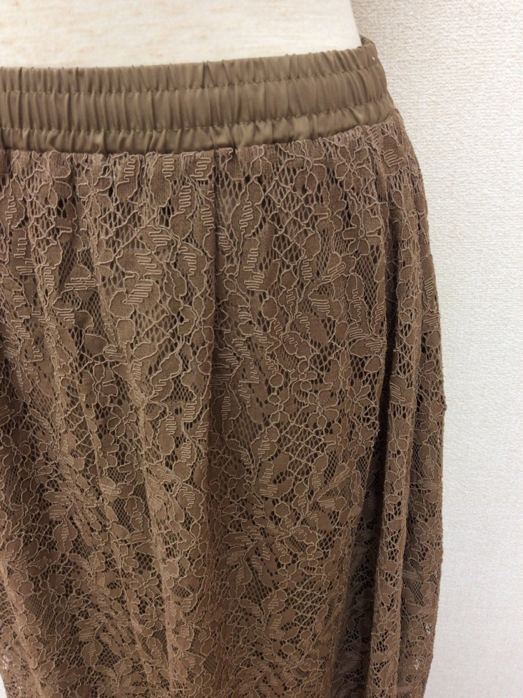 | 管理番号:99^130055 アースミュージック&エコロジー タグ付き! 甘い茶色のレーススカート ウエストゴム 表示サイズ:F 実寸(参考)