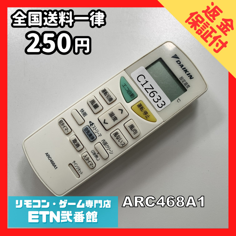 C1Z633 【送料250円】エアコン リモコン / Daikin ダイキン ARC468A1 動作確認済み★即発送★ 冷房 暖房