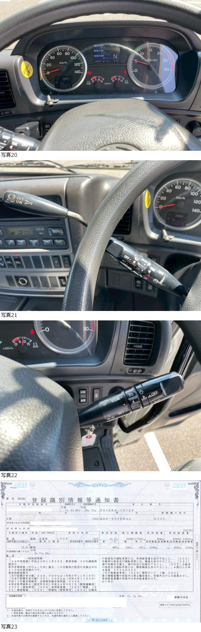 | 日野 グランドプロフィア ダブルトラクタ 平成25年式 馬力520ps 第五輪荷重17.7t 実走行57万km台 |