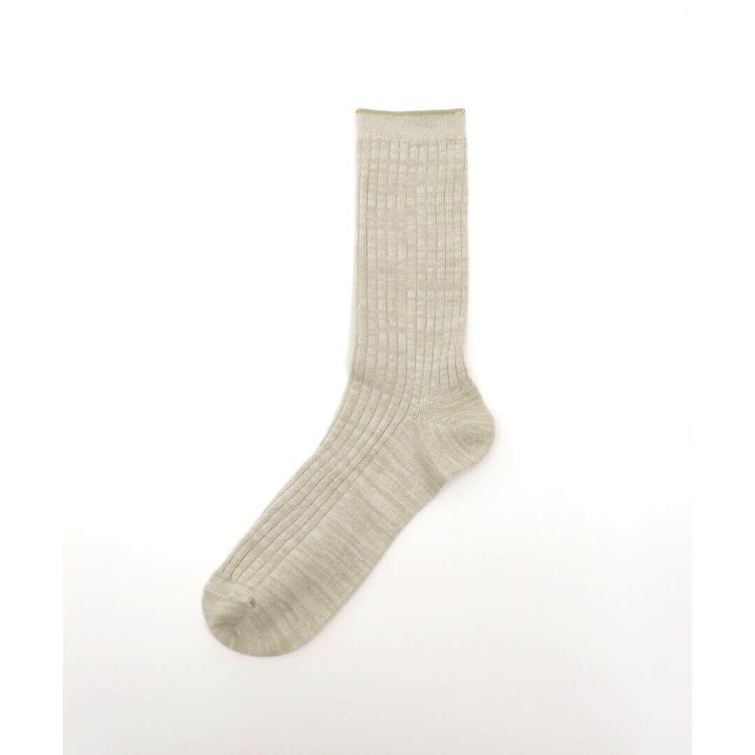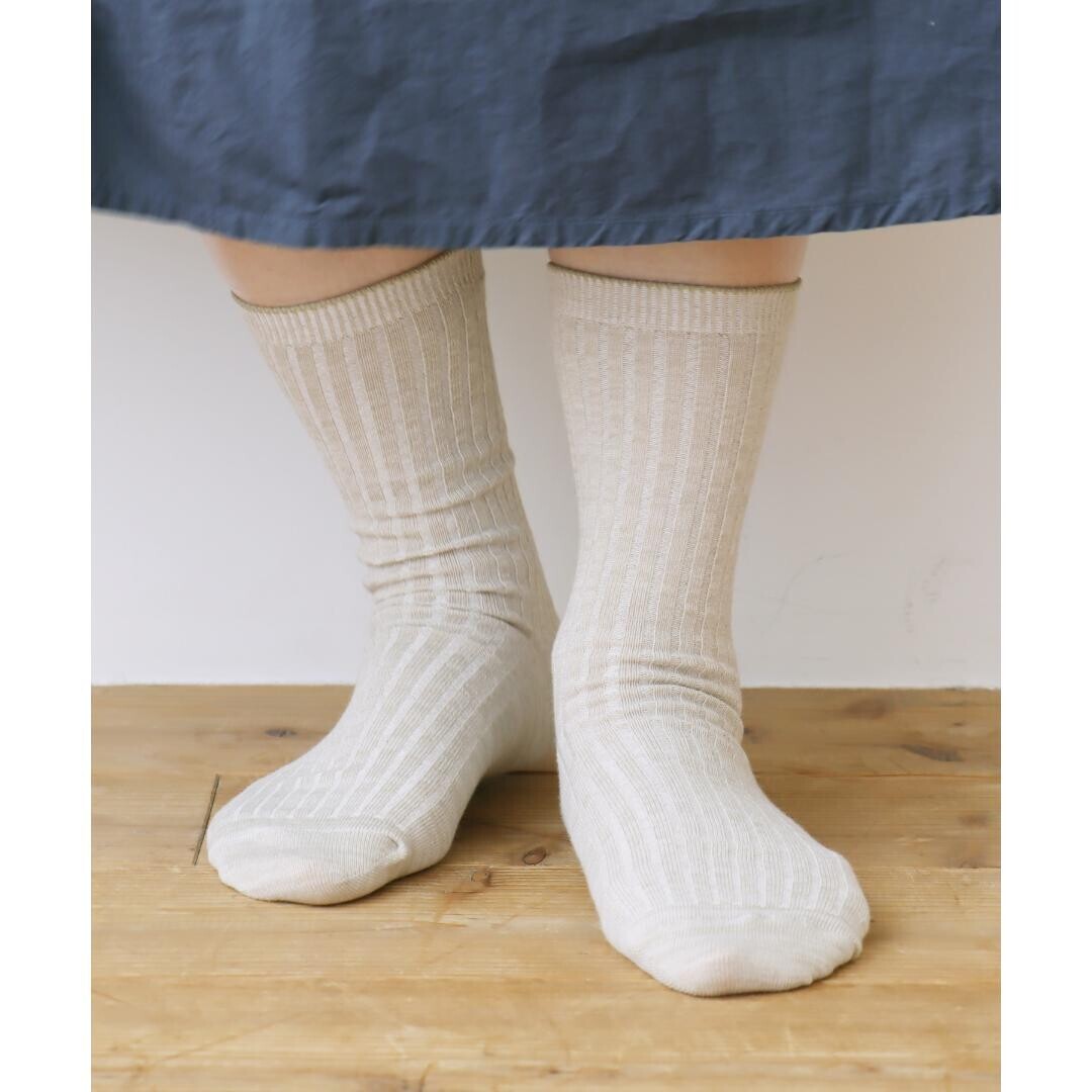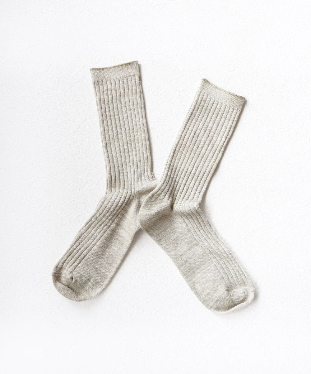 リネン70%・コットン30%の混紡糸を使ったリブ編みソックス。