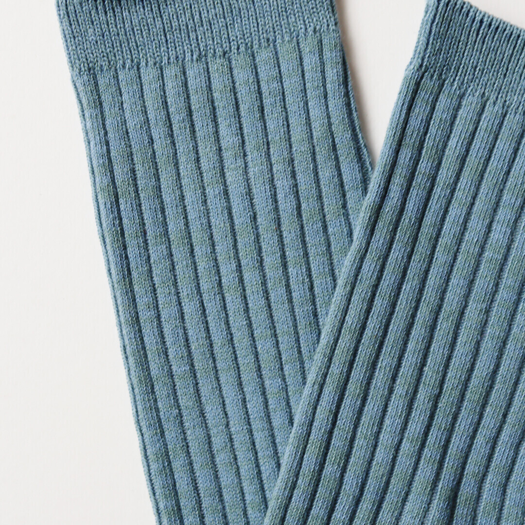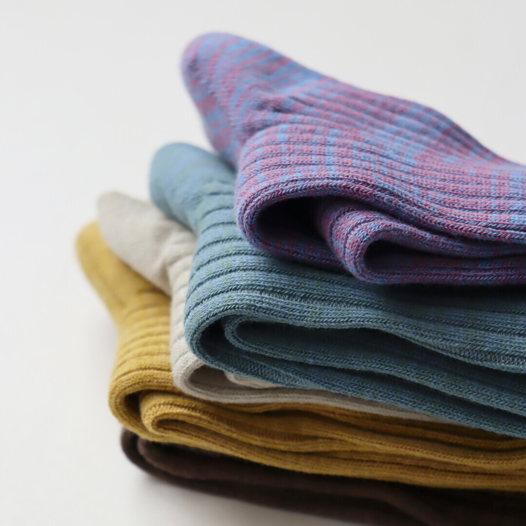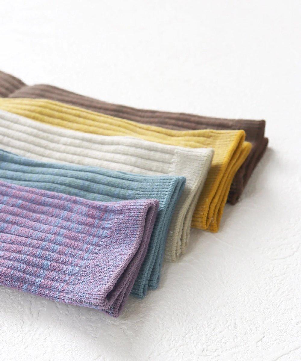 リネン70%・コットン30%の混紡糸を使ったリブ編みソックス。
