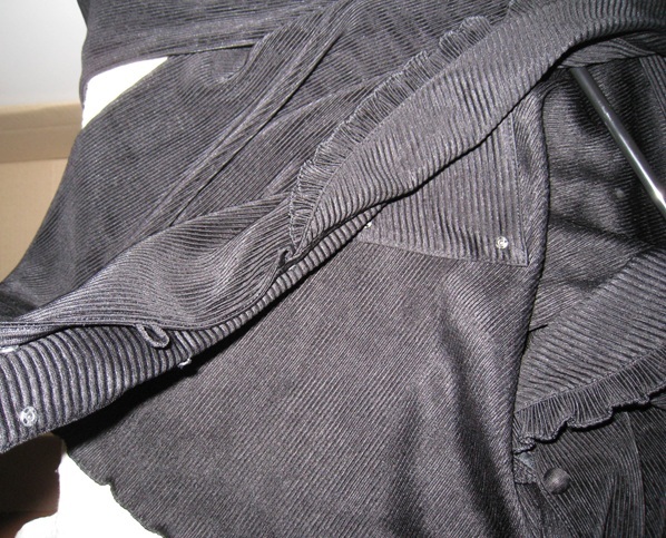 サイズ/L 表地/アセテート57%、ポリエステル43% 裏地/キュプラ100% 肩パッド付 ボレロのボタンは輪をかけるタイプなのでぴっちり閉まる感じではなく下に着たものがチラ見えするので、それが嫌な方は添布がついているのでそれをスナップで取り付ければ見えないようにできます。 未使用ですが、在庫処分の長期保管品。 色々ご理解頂ける方のみよろしくお願い致します。 |