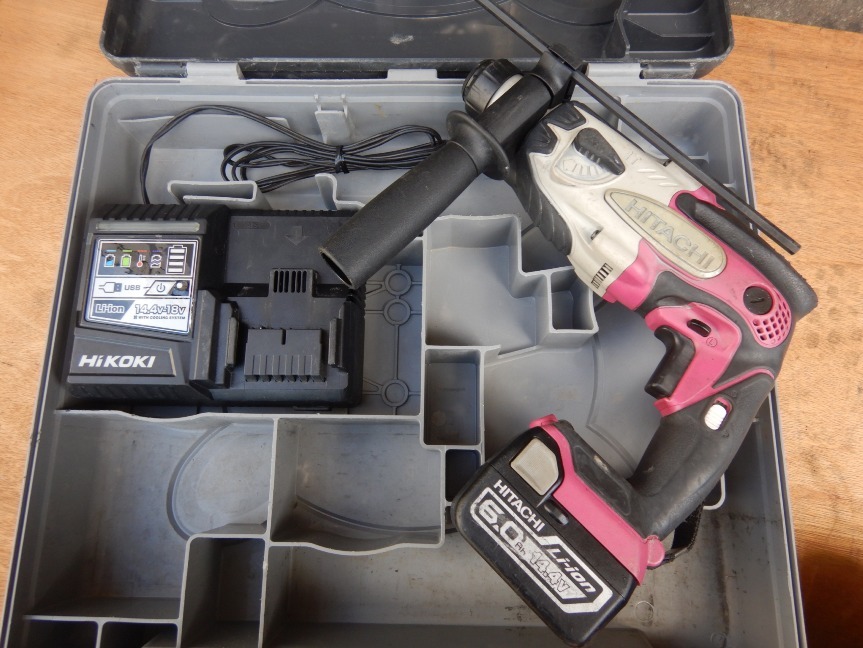 | 即決税込 中古保証付 日立14,4V 充電ハンマドリル DH14DSL 14.4V6.0Ah電池1個 充電器付セット 打撃力2段切替機構付 無段変速 正逆切り替え 回転/回転打撃切り替え