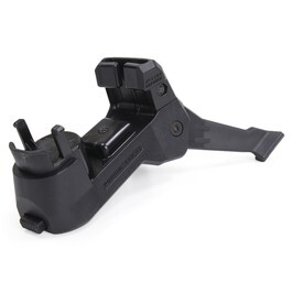 グリップ下部にバイポッドを収納した状態で運用します。グリップ後部下のボタンを押すだけでスプリングの力で一瞬にしてバイポッドが展開する為、視線をターゲットから外さずに済み、収納時も足を折り畳むだけの簡単操作です。