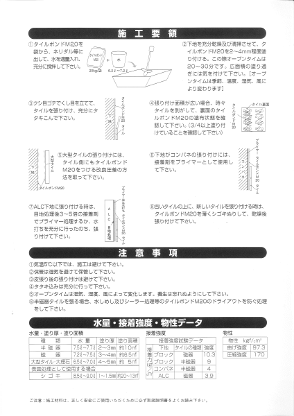 | 張り付け | 半磁器タイル | 7.5~7.7㍑ | 3.0mm クシ目 | 10.0㎡ |