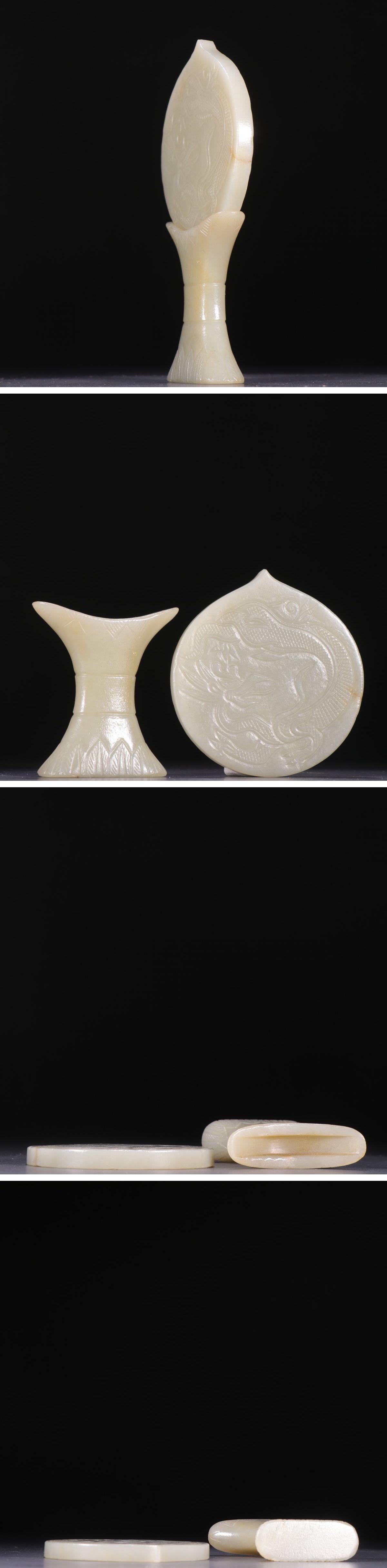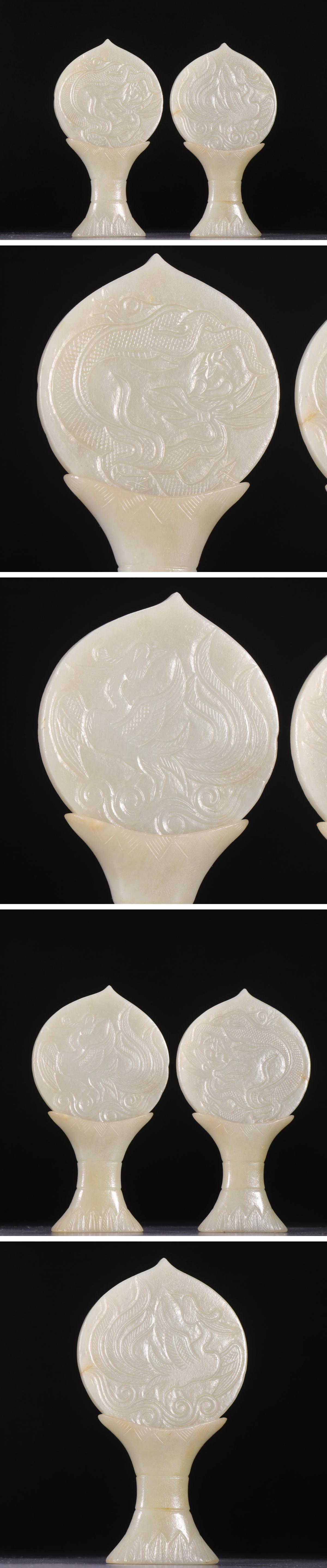 【清】某有名オークション購入 清時代 和田玉 龍鳳紋挿屏一双 材質保証 当時物保証 古置物 古擺件 古美術 時代コレクション7L9-TD8