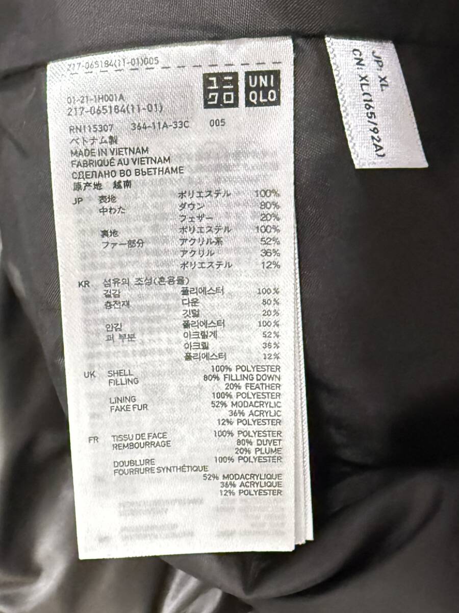 商品名 ★UNIQLO ユニクロ レディース ファーフード付き ダウンコート XLサイズ チャコール系 217-065184★ |