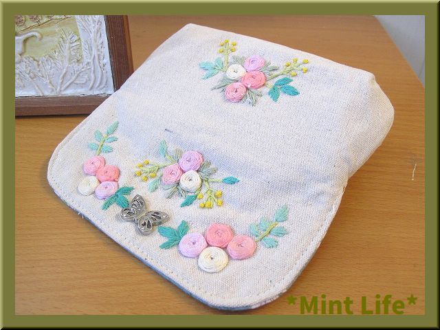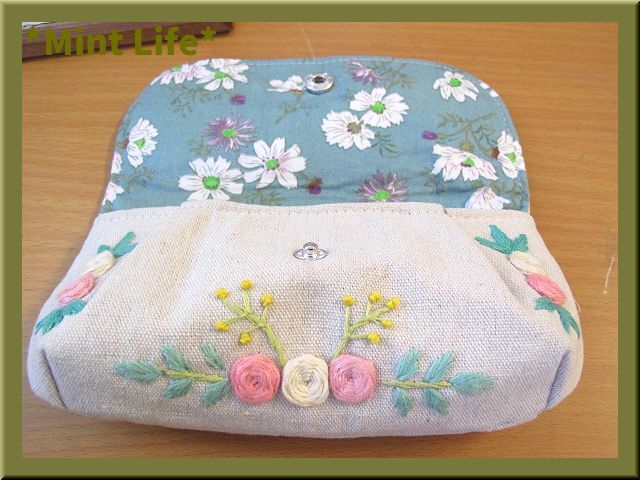 | *商品詳細* 商品名: *Mint Life* ハンドメイド 「リネンポーチ」メガネ兼ペンケース 手刺しゅう 使用生地: リネン 95%&コットン5%混生地(生成) 内布: コットン生地(グリーン地に花柄) サイズ: 幅: 19㎝ 高さ: 12㎝ 重さ: 約46g (梱包前) (採寸の誤差はご了承ください。) *形の説明* 蝶のバネホック付きの「リネンポーチ」です。 タックとダーツがありますので、ぷっくりしています。 「メガネケース」や「ペンケース」としてお使いただけます。 刺しゅうは、表面&裏面にもバラを刺しました。 表生地裏&内布裏に薄手&厚手の「接着芯」を貼りました。 | ||||