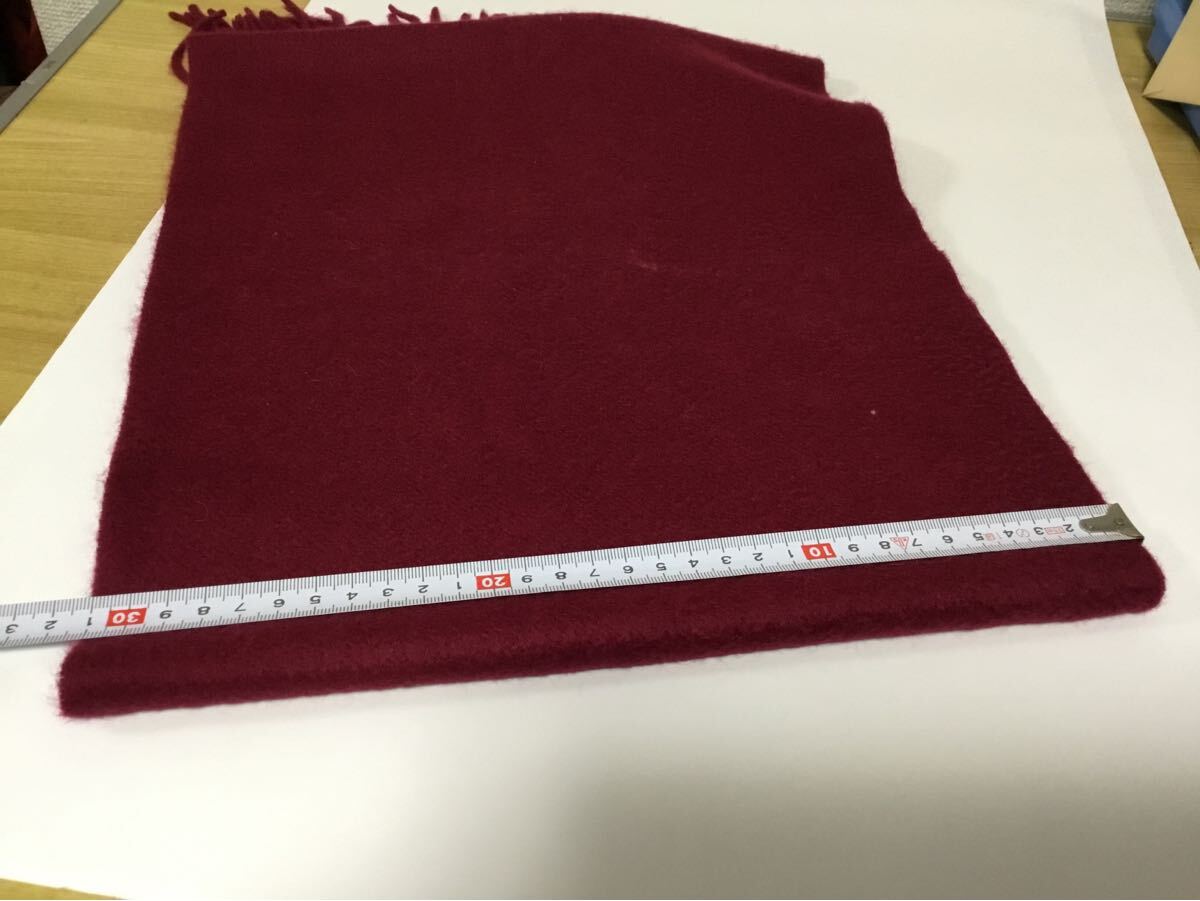 ワイン色・サイズ 約30cm x16cm。カシミヤ98%。
