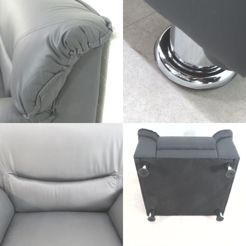 | 材 質 | 本体/木フレーム、張地:PVCレザー、クッション材:ウレタンフォーム、脚:PP樹脂/スチール(メッキ) |