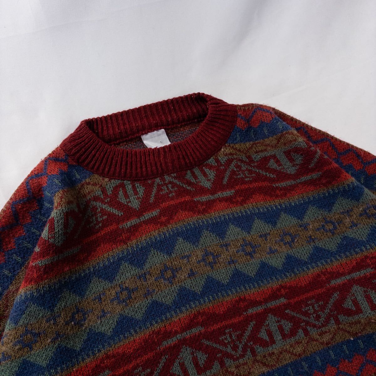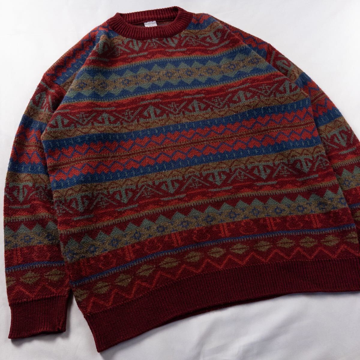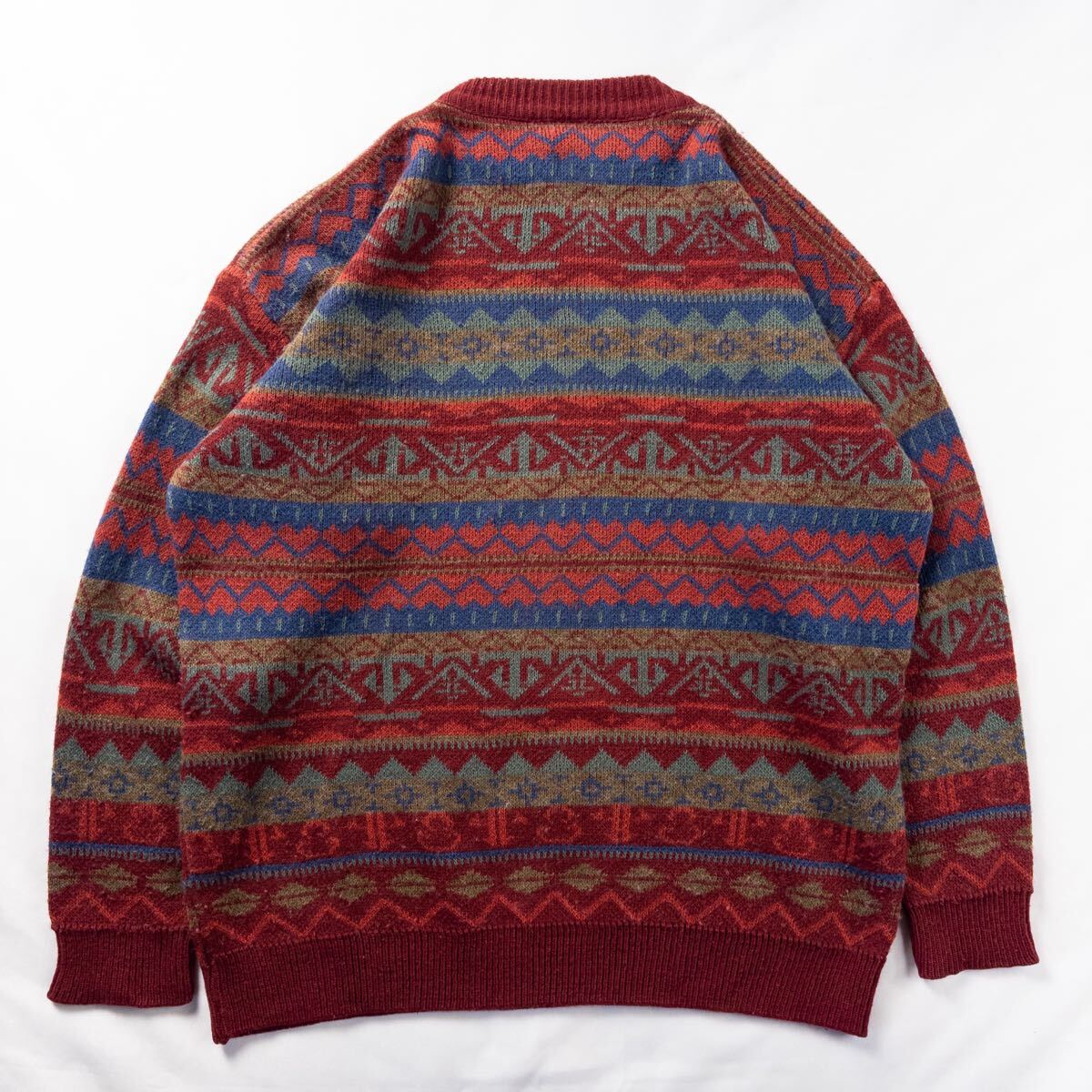 Euro Vintage フランス製 Unknown アクリル 好配色 くすみカラー 暖色 エスニック 民族 フェアアイル 幾何学模様 アート 総柄 デザインニット| 出价者 | 信用 | 价格 | 时间 |