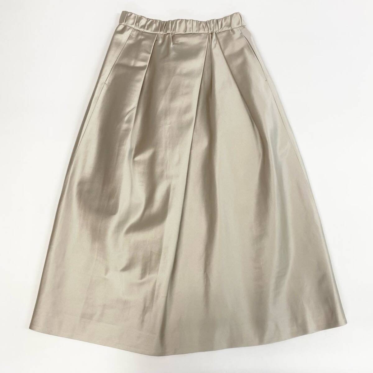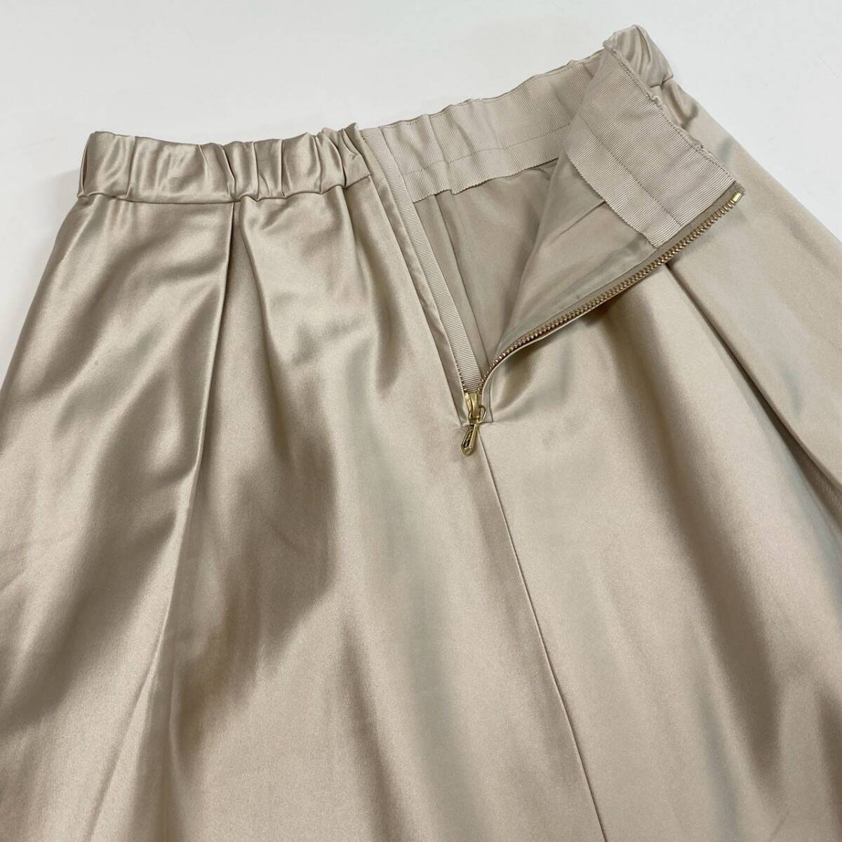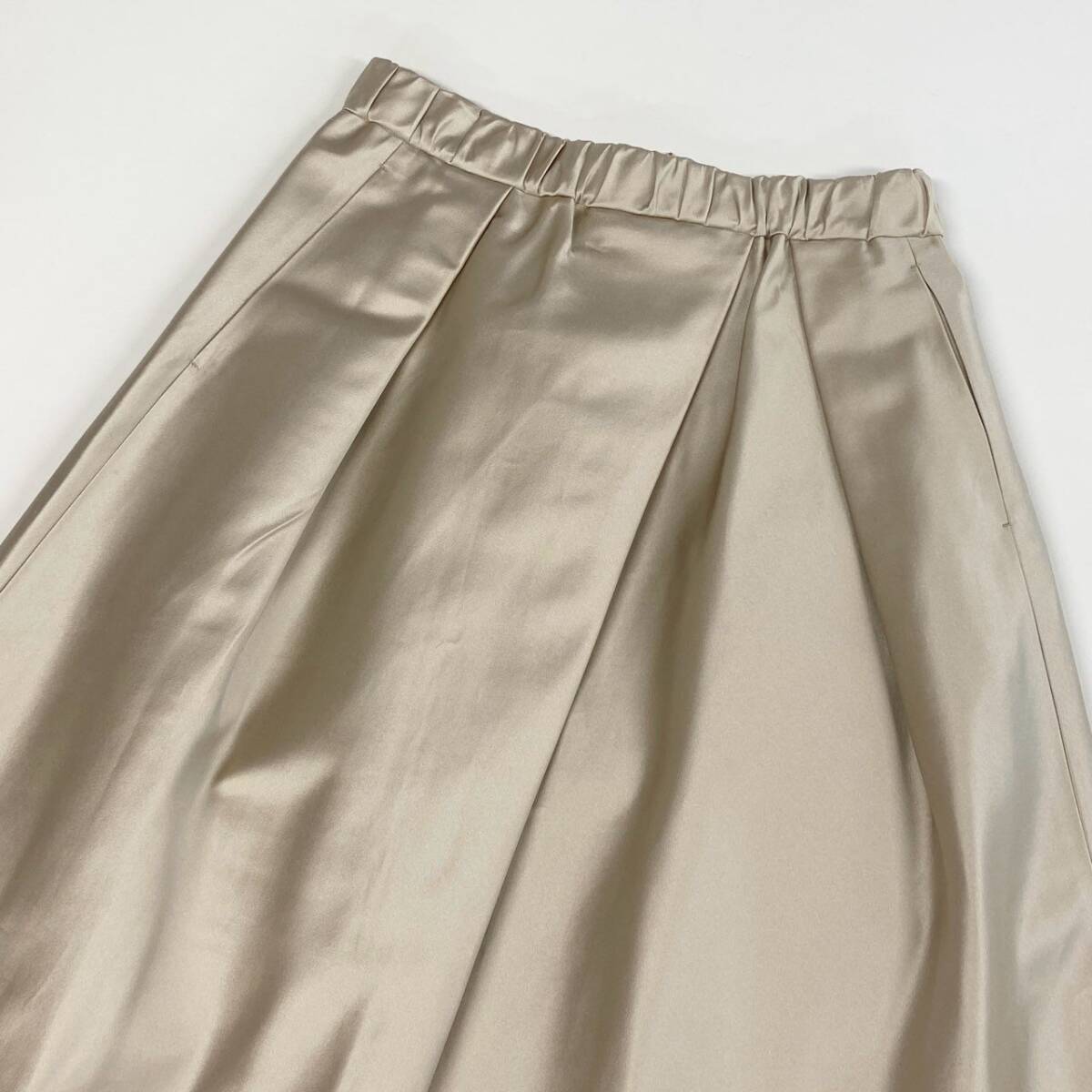 | AIによるサイズ診断 | 実寸はウエスト32cm・総丈80cmで、表記サイズ36(S〜M相当)。 身長160cm前後の方でふくらはぎ中ほどの丈感となり、上品なミディ丈シルエットです。 ウエスト後部にゴムを配し、体型に自然にフィット。標準〜やや細身の体型の方におすすめで、通勤やフォーマルシーンにも適したサイズバランスです。 |