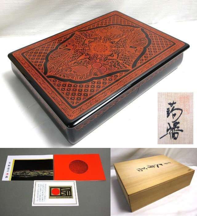 未使用 坂本雪斉 作 蒟醤塗 文庫 文章筥 共箱【説明欄に詳細写真有り】の出品です。