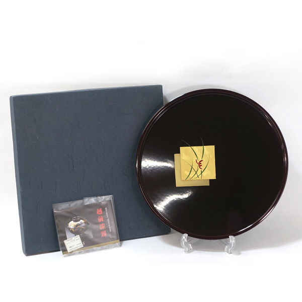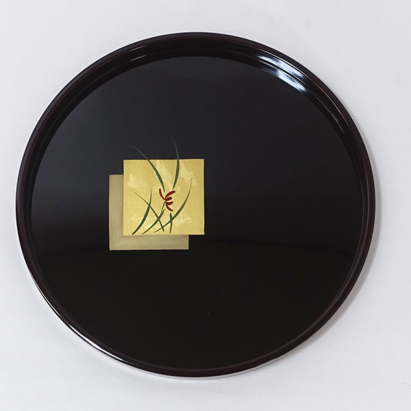 | 伝統工芸会津塗、美しい金貨消え、溜りの丸盆です。お茶席にいかがでしょう。 |