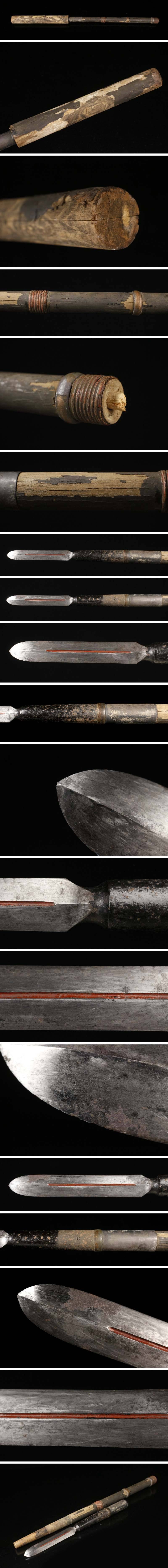 [.R]25.10 251017F17* * * 商品詳細 * * * ここでしか出逢うことのできない唯一の美をご紹介させて頂きます。 小さいながらも存在感のある袋槍のご紹介です。 穂さえ持ち歩けばすぐに槍が作れる袋槍は戦の世の実践的な槍で、 本品も華美な装飾のない姿は正に質実剛健を体現しております。 経年を経た魅力が印象的な拵もまた魅力的で、 登録も不要で時代武具をお手元にてご堪能いただけます。 この機会に是非お求めください。 ■商品内容/槍本体、拵。 ■本身サイズ 全長/27.8㎝ 刃渡/12.7㎝ 元幅/2㎝ 先幅/1.7㎝ 元重/0.7㎝ 先重/0.6㎝ 本身重量/187g 拵全長/63.5㎝ ■状態/本身に傷、錆び、刃毀、剥げ、 拵にスレ、傷、錆び、剥げ、割れ、直しがございます。 刃切の有無は不明です。 ※写真にてご確認、ご了承の上ご入札ください。 ![]() * * * 支払詳細 * * * !かんたん決済 * * * 発送詳細 * * * 入金確認後3営業日以内に発送致します。 ※直接引き取りも可能です。 60~160サイズにつきましては 佐川急便、ゆうパックのどちらかで発送いたします。 ゆうパック発送の場合、弊社の発送日から追跡サービスに問合せ番号が反映されるまで 約1日ほどお時間がかかりますのでご了承下さい。 * * * 注意事項 * * * 運送中の破損があった場合は速やかに当社までご連絡下さい。 保険を利用するのに受取連絡後に運送会社による現場での破損状況確認が必要となります。 勝手に返送されますと保険の適用外となりますのでご注意ください。 * * * * * * お問い合わせ:082-236-8669 |