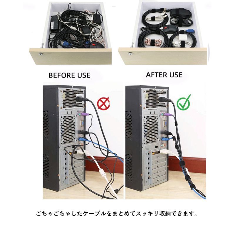 ごちゃごちゃしたケーブルをまとめてスッキリ収納できます。