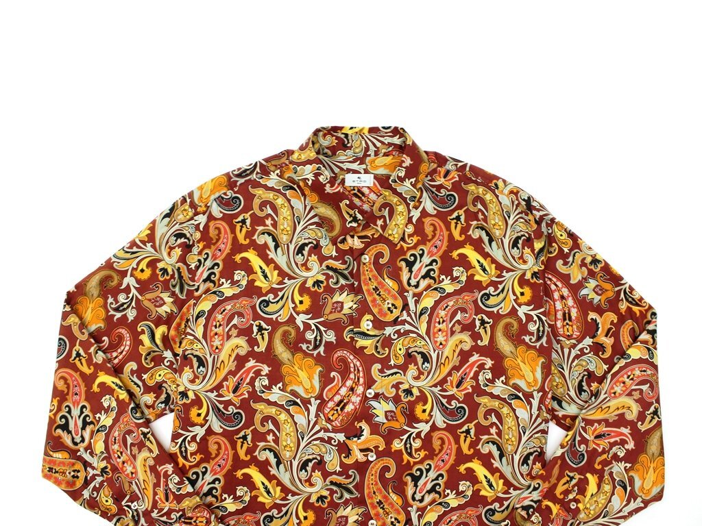 11万新品◆41=L◆【ETRO】エトロ◆イタリア製 エスニックボタニカルペイズリーモチーフ コットンシャツ 橙マルチカラー