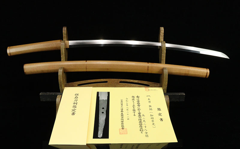 | ■刀剣のサイズ表示について 元幅・・・焼出し付近を測定しております 先幅・・・横手筋付近を測定しております 元重ね・・・焼出し付近の厚みを測定しております 先重ね・・・横手付近の厚みを測定しております (多少の誤差はご容赦ねがいます) ■銃砲類のサイズ表示について 全長・・・銃身先から台木尻までを測定しております 銃身・・・台木を除いて金属部分を測定しております (多少の誤差はご容赦ねがいます) 当社が出品する刀剣類は、入手した時の状態のまま出品しております。 ハバキ、小道具等も当社で調整したり付け替えたりはしておりませんので、合わせではないかというクレームは一切受け付けません。 刀身の疵も隠すことなく載せておりますので写真をよくご覧になってご入札ください。 疵に関して、説明がない等のクレームは一切受け付けません。 写真ではわかりにくい部分は質問欄やお電話でお問い合わせください。 但し、説明欄に表記のない刃切れに関してのみ返品やご相談に応じます。 ※ご落札しご購入されお手元に届いてから20日以内に 登録証に記載されている各都道府県の教育委員会にご連絡し 登録証の所有者変更を必ず行ってください | |||