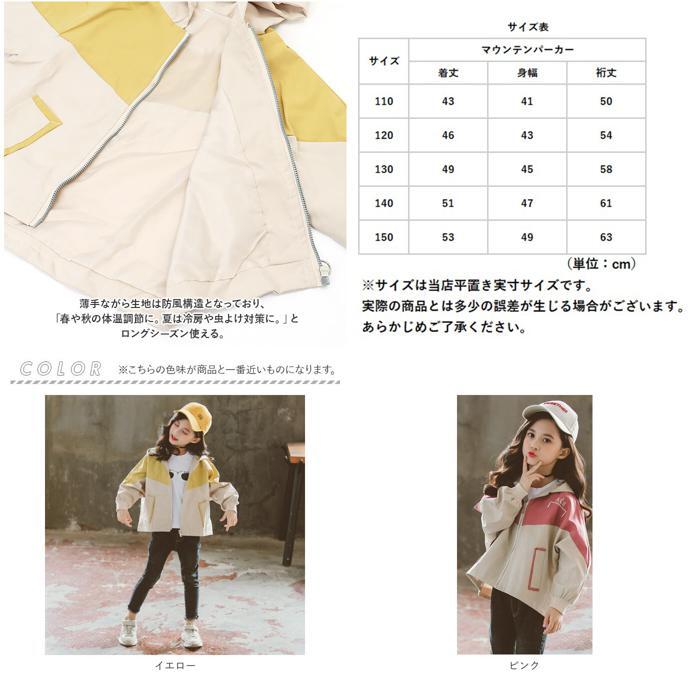 | 商品説明 | ・・お出かけに便利なキッズマウンテンパーカー! ・【ロングシーズン対応】 ・前開きタイプでファスナー仕様。フードも付いているので突然の雨にも対応。 ・薄手ながら生地は防風構造となっており、「春や秋の体温調節に。夏は冷房や虫よけ対策に。」とロングシーズン使える。 ・【ユニセックスで使える】 ・バイカラーの切り替えデザインが可愛いアイテム!明るめな配色でユニセックスで使える◎ ・【脚長&スタイルアップ効果も♪】 ・丈は短めで脚長&スタイルアップ効果も♪ ・【カジュアルでこなれた雰囲気】 ・両サイドにはフェイクポケットがあり、カジュアルでこなれた雰囲気に。 ・【普段使いから通園や通学まで活躍♪】 ・普段使いから通園や通学まで活躍♪1枚羽織るだけでおしゃれなカジュアルコーデに変身☆ |