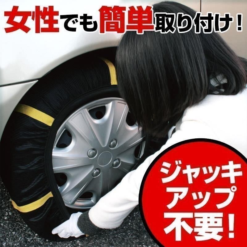 これさえあれば急な積雪も心配無用!タイヤに被せるだけなので女性でも簡単に装着できます。