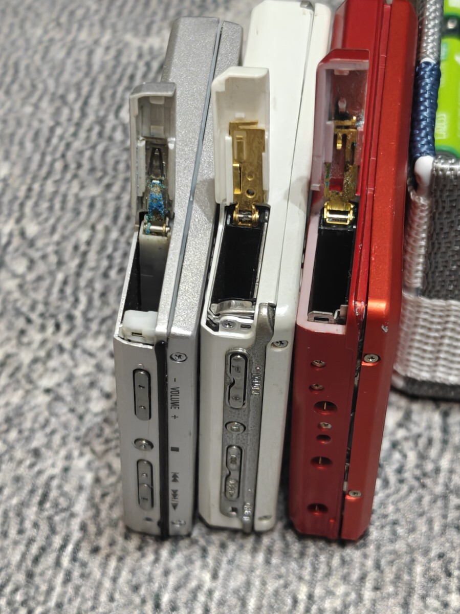 | 商品説明 | MZ-E700 シルバー ガム電池不可/外付け電池ボックスで動作確認済み。 ※たまに動作音少し大きい場合あり。 MZ-E70 ホワイト系 ガム電池/外付け電池ボックスで電源オンオフのみ可能、 音が出ないので、操作ボタンがきいてるのか不明 ディスクをいれると電源ランプはつく。 ビクター XM-C11 レッド系 外付け電池ボックス付き。 外付け電池ボックスで電源オンし、ディスクをいれた 状態では動作音するが、空回りしている感じ。 ※凹みあり どちらもディスクはスムーズに出し入れ可能、ガム電池のフタも開閉良好です。 他、破損等はありません。 リモコン RM-MZE55 表示、イルミ,音出しOKですが誤動作します。 |
