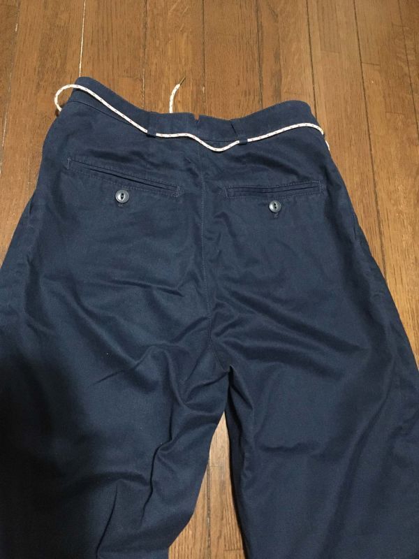 ラコステのコットンパンツ(紺色)サイズXSとなります。| 前に2タック、トリコロールの紐がアクセントです。 |