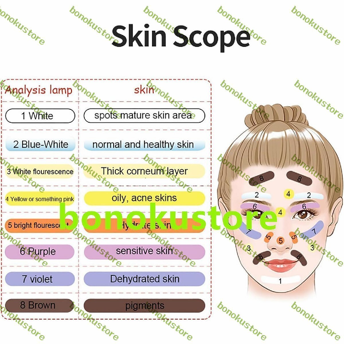 商品の説明 商品情報: 製品名: ウッズライトスキンアナライザー 製品材質:ABS 電源電圧:220V 電源周波数: 50(HZ) 供給電流: 0.35A 製品重量:1.3kg 波長は約365nm パッケージサイズ: 30*21*8 センチメートル/11.8*8.2*3.1 インチ パッケージリスト: ウッズランプ*1 遮光商商品情報: 製品名: ウッズライトスキンアナライザー 製品材質:ABS 電源電圧:220V 電源周波数: 50(HZ) 供給電流: 0.35A 製品重量:1.3kg 波長は約365nm パッケージサイズ: 30*21*8 センチメートル/11.8*8.2*3.1 インチ パッケージリスト: ウッズランプ*1 遮光布*1 マニュアル*1 使い方? 1. 肌を清潔にした後、コットンでお客様の目を覆います。 2. カバーシェードを木製ランプに固定します。 3. カバーシェードでお客様の顔を完全に覆います。木製ランプはクライアントの顔と平行で、距離は 5 ~ 6 cm でなければなりません。 4. 紫外線の下で異なる色の外観によって異なる皮膚の特性を識別します。