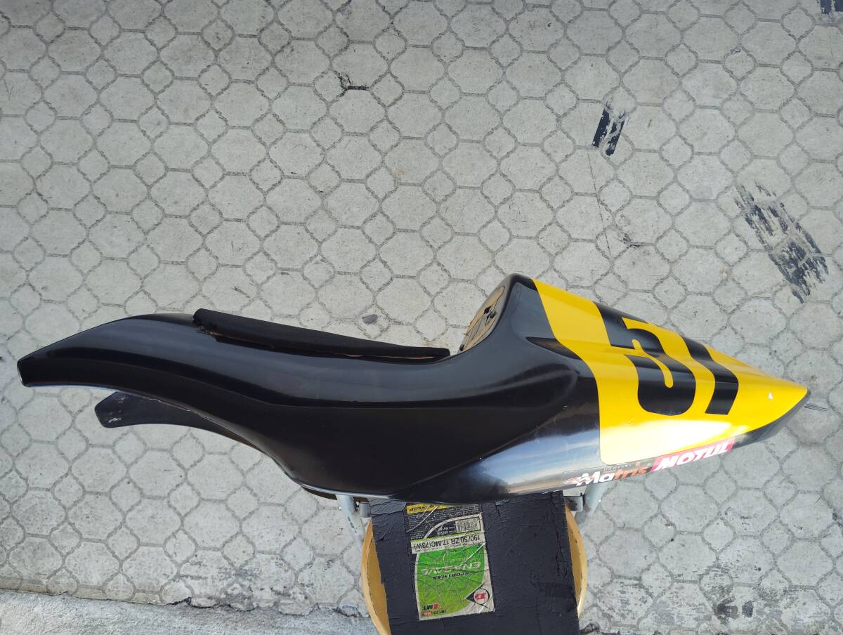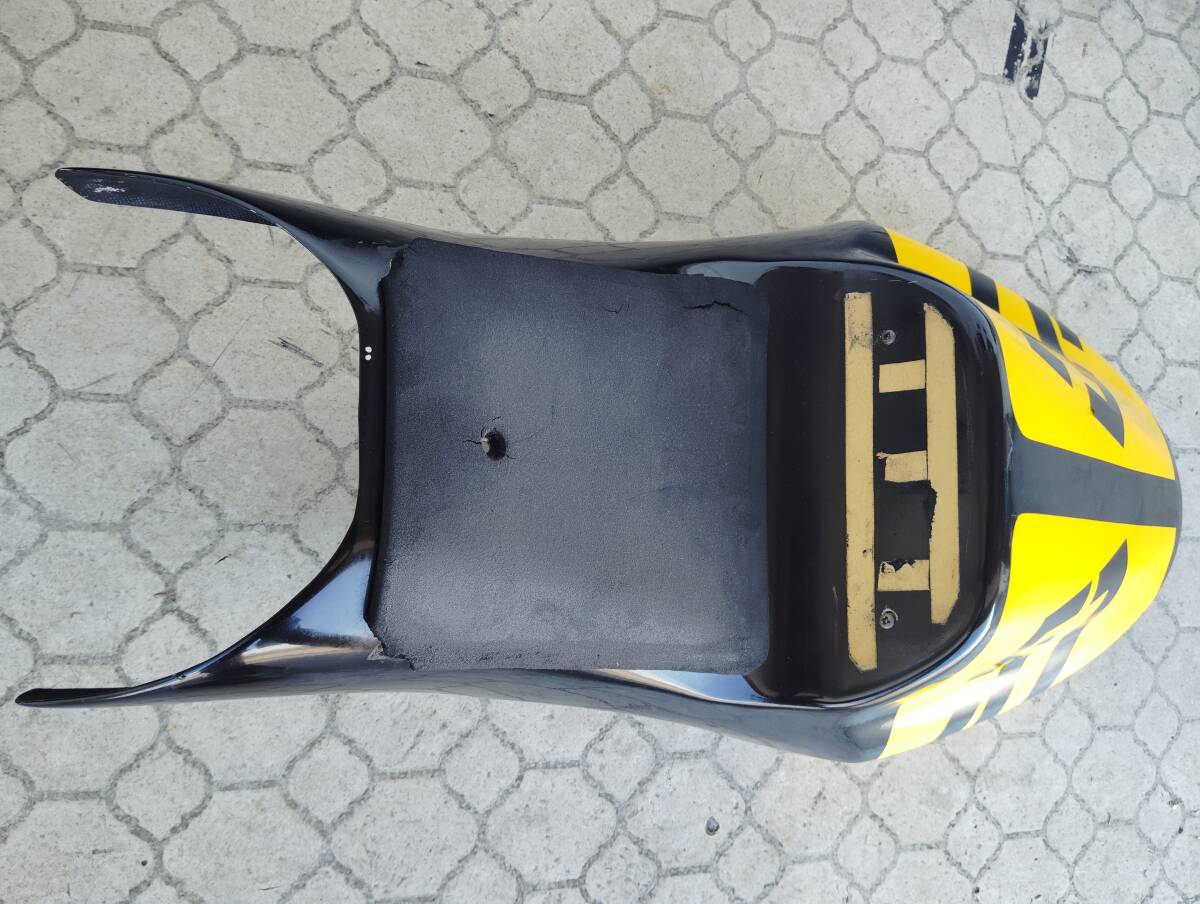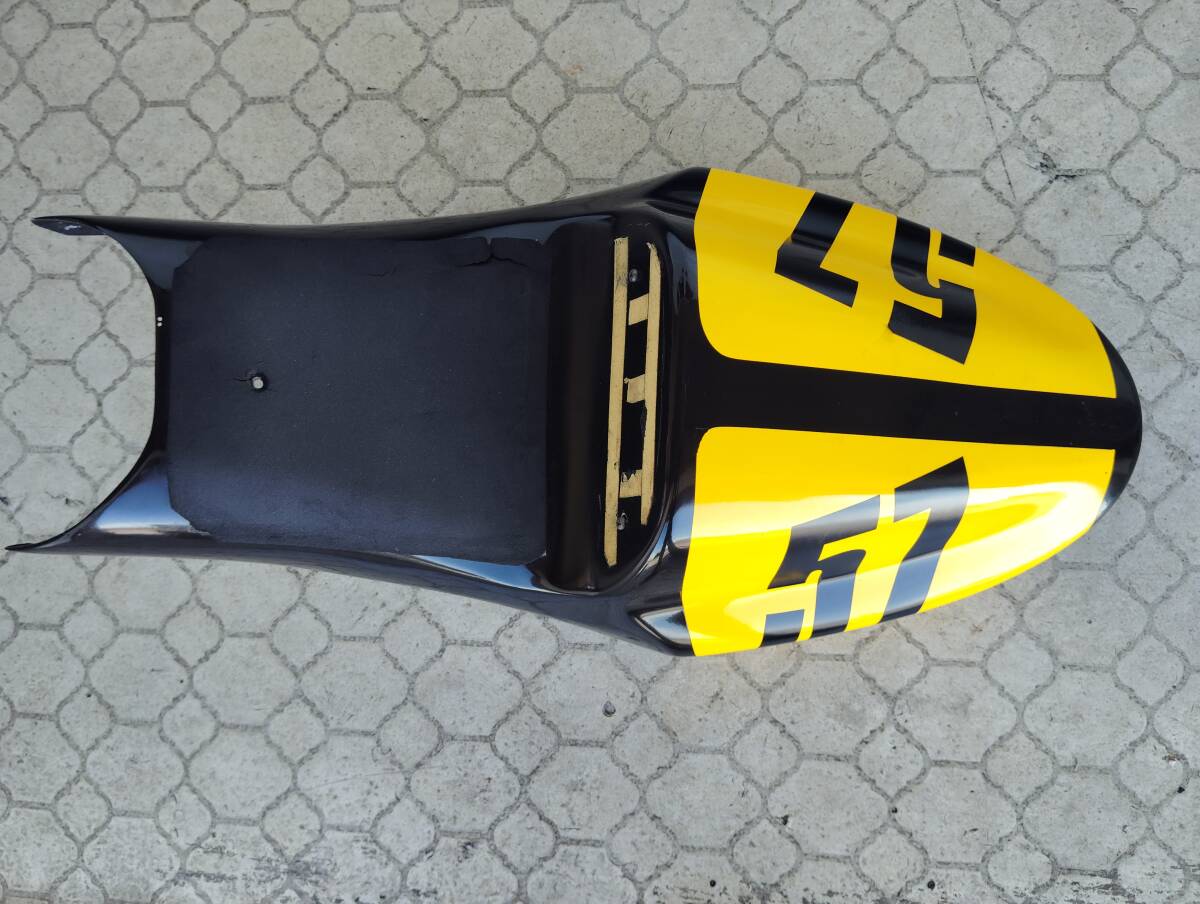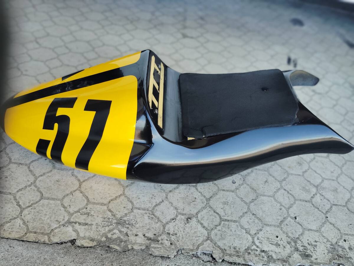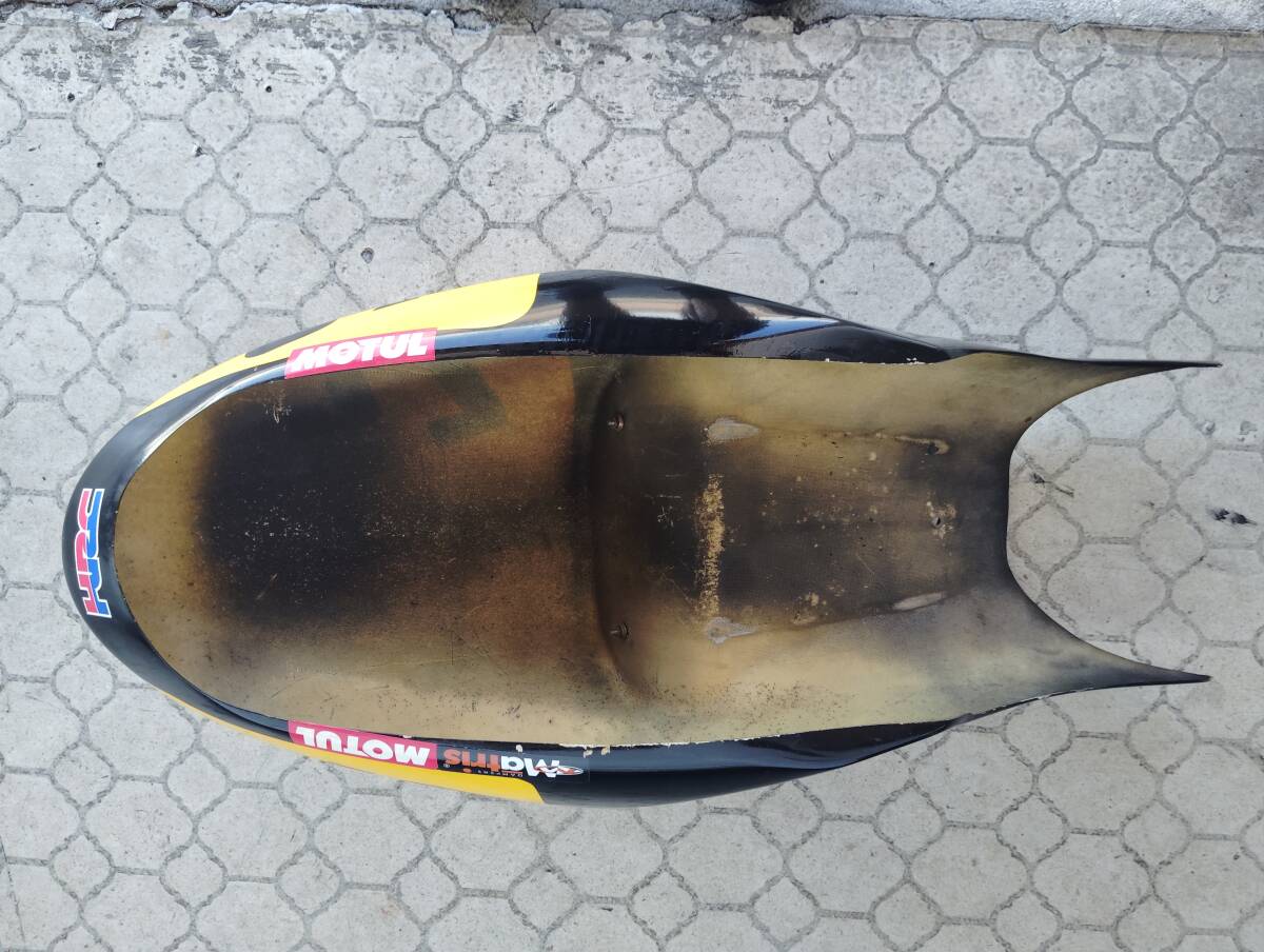 素材はFRPです。シートスポンジにキズ(裂け?)カウルに剥げやキズなどがあります。ゼッケンはシールみたいで簡単に取れそうな感じです。このような状態ですが、宜しくお願いします。すいませんが中古の為ノークレーム、ノーリターン、ノーキャンセルでお願い致します。発送は、リサイクル梱包で発送致しますので宜しくお願いします。