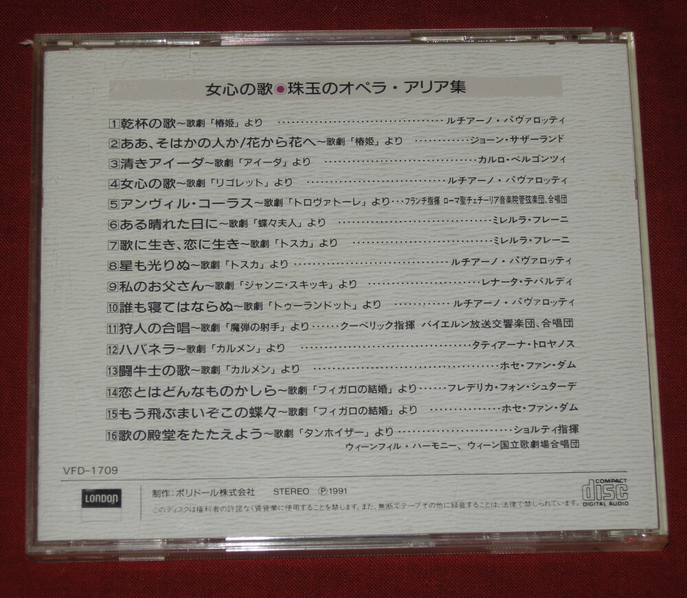 決定版 世界の愛唱歌全集 女心の歌 珠玉のオペラ・アリア集◆CD◆中古品