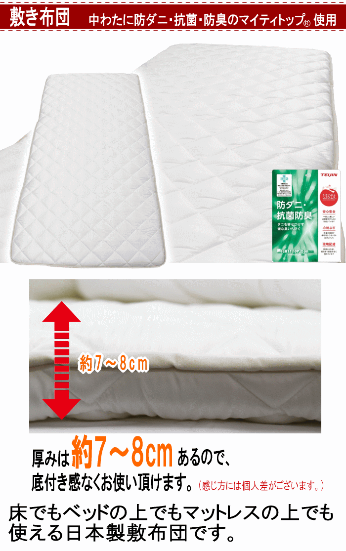 ※敷き布団は床だけでなく、ベッドのマットレス代わりとしてもご使用可能です。