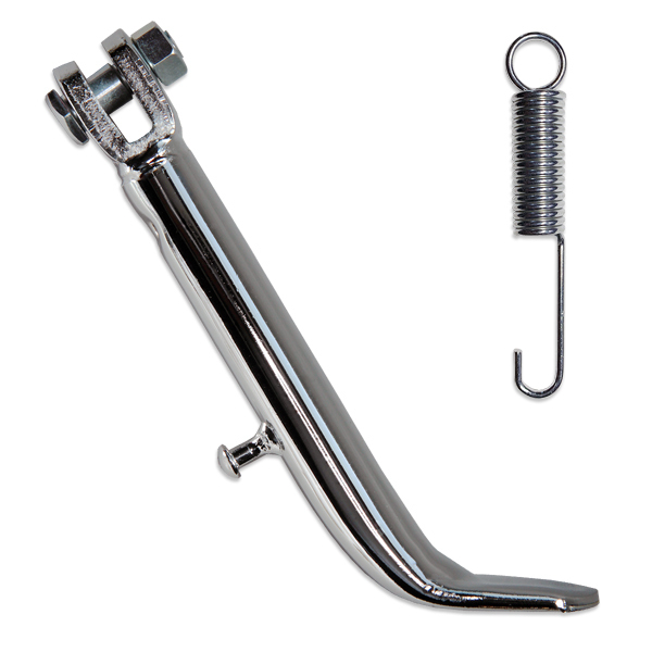 汎用のメッキサイドスタンドです。 水抜き穴が裏側側面と底部に空いています。 モンキー等にどうぞ。 【セット内容】 ・スタンド ・スプリング *溶接時のスパッタの付着が見受けられます。気になる方はヤスリやペンチで取り除いてご使用ください。 |