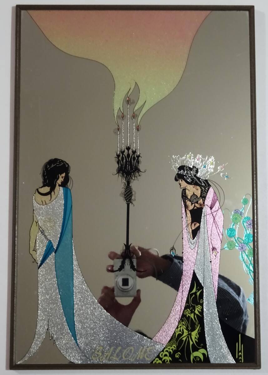 アクセスいただきありがとうございます。この品はパブミラーです。ビアズリーのサロメの挿絵が描かれています。あまり出ない品です。手頃なサイズで洋風インテリアにいいかと思います。ヌーヴォーファンの方にお薦めです。経年による使用感・塗装落ちがあるので、写真を参考にして下さい。中古品とご理解の上でNC・NRでお願いします。出来るだけ迅速な対応を心掛けますが、仕事上連絡が遅くなる場合もあるのでご了承下さい。