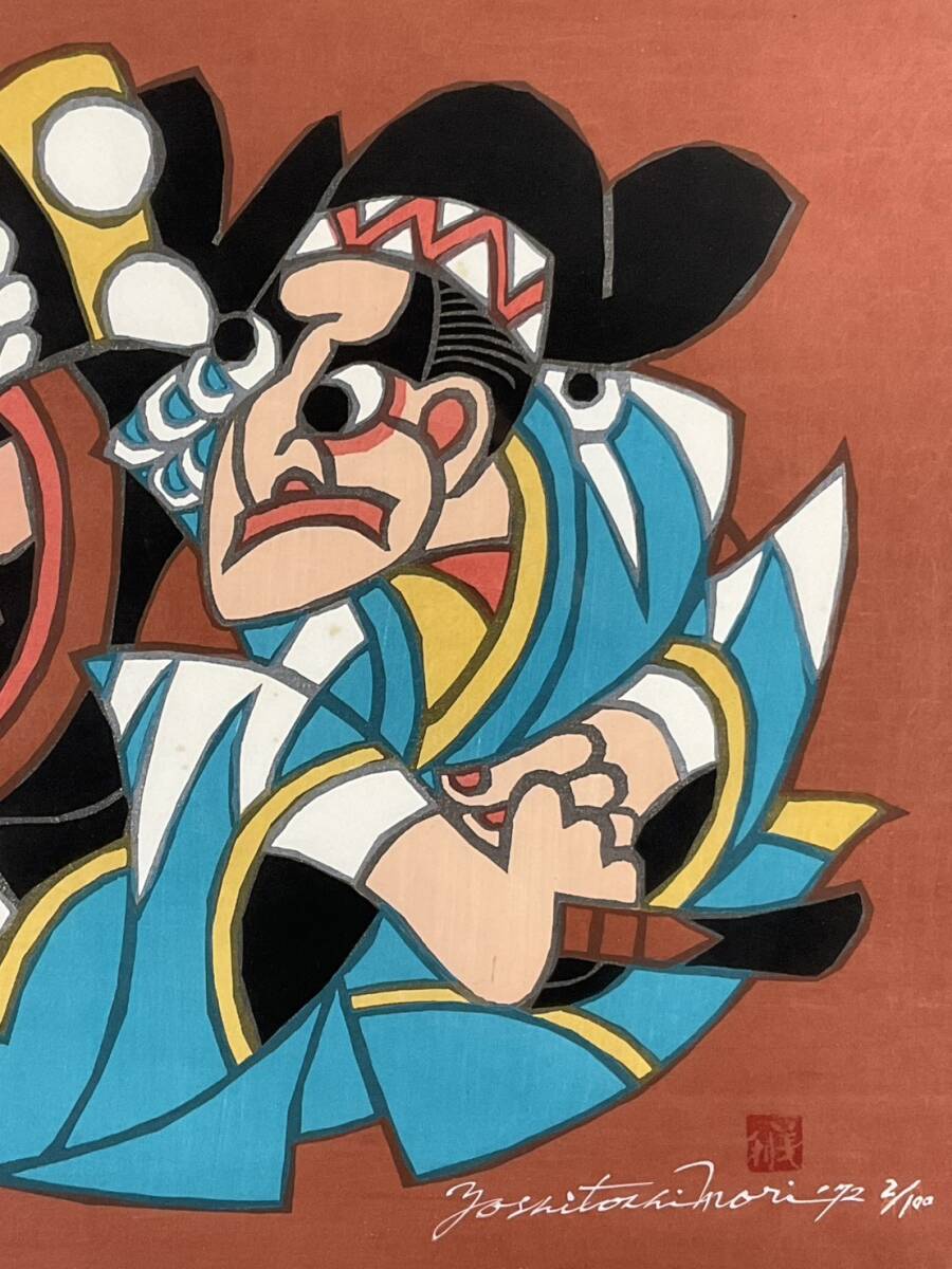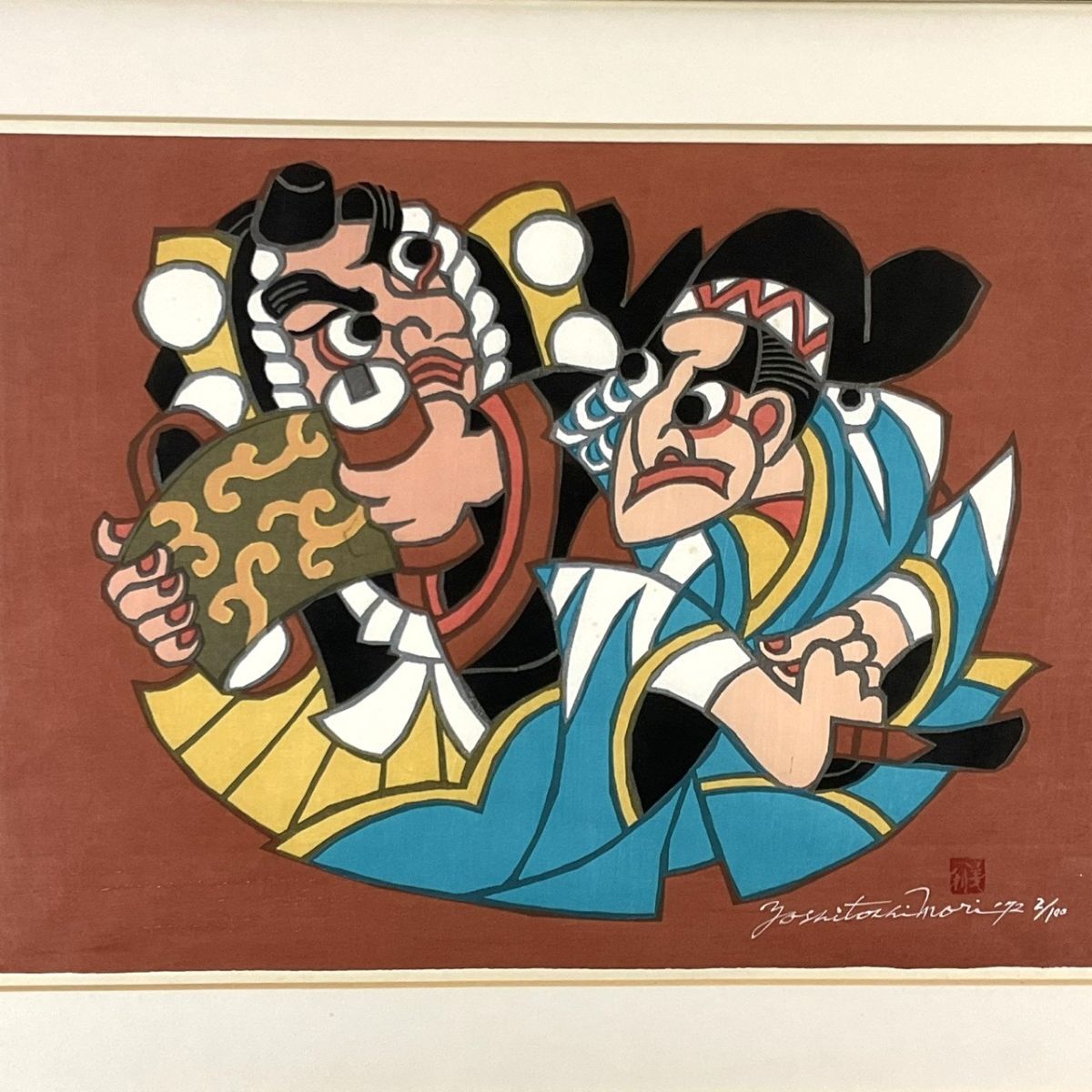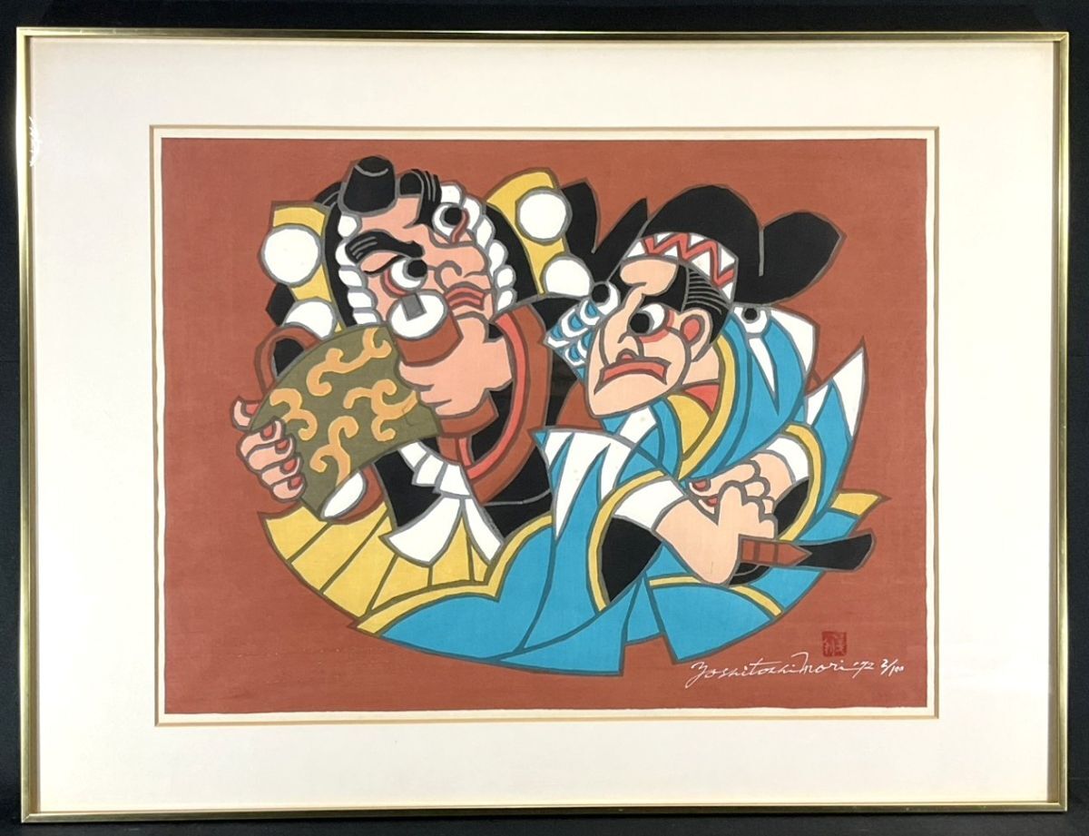 真作■木版画■森義利■「弁慶と牛若丸」■ORIGINAL WOODBLOCK PRINT■羽根摺創始者 日本版画協会