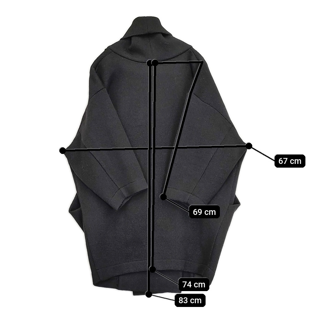 | 実寸サイズ | 着丈:約83cm 着丈(後ろ):約74cm 身幅:約67cm 裄丈:約69cm ※採寸画像がある商品はハンガーに吊るした状態での計測のため、平置きでの採寸とは差が生じる場合がございます。平置きでの実寸サイズをご希望の場合は、ご購入前に必ずご質問ください。 ※記載以外のサイズが合わないことを理由とした返品はできませんので、 記載部分以外で実寸サイズの気になる箇所があれば必ず購入前にご質問ください。 |