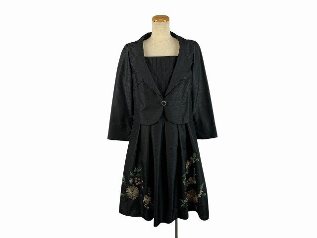 | Jocomomola / ホコモモラ セットアップ ジャケット スカート 上下サイズ違い 花刺しゅう レディース サイズ : 上42・下40 ブラック | ||||||||||||||||||||||||