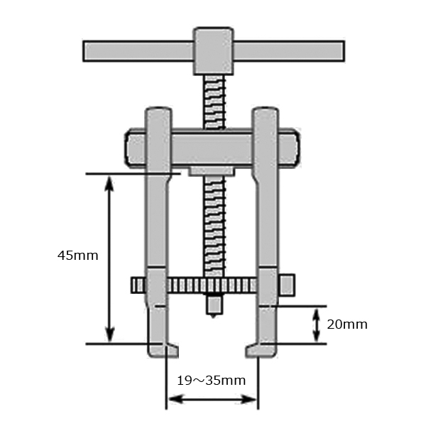 自動車(ダイナモ)のベアリング、電動工具(丸のこ)のベアリング、家電(クリーナ)のベアリング等の引抜き作業に。 被引き抜き物の直径:19~35mm 材質:クロームバナジウム鋼 |